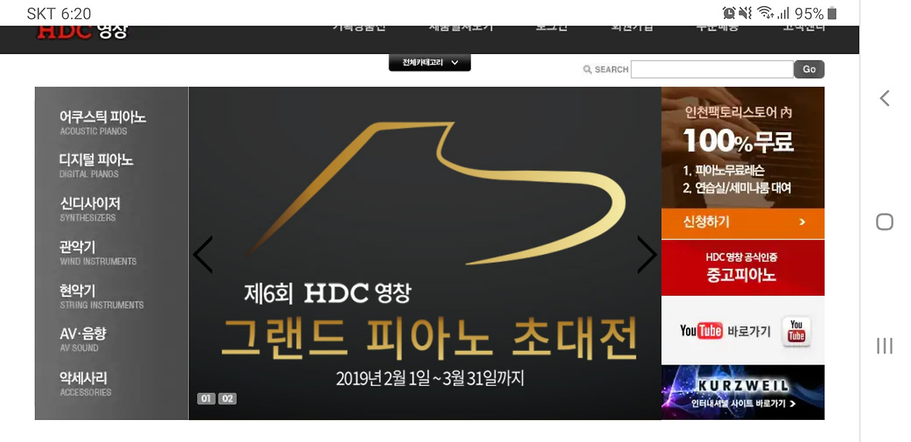 조카 디지털피아노로 평소보다 더 자주 찾는 HDC 영창 홈페이지다.