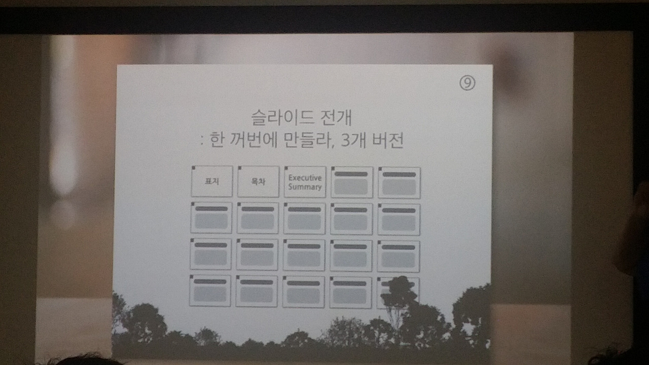 마지막 5분은 강의 요약이였다. 첫 장은 찍지 못했지만 전체를 충분히 곱씹게 된다. 나 또한 매번 보고서를 준비하면서 조금 더 보고받는자 입장에서 접근하려고 한다. 솔직히 고민 할 수록 더 좋은 결과는 나오지만 기한이 문제이다. 그렇기에 좋은 사례들의 문서들을 자주 참조하는 편이다.