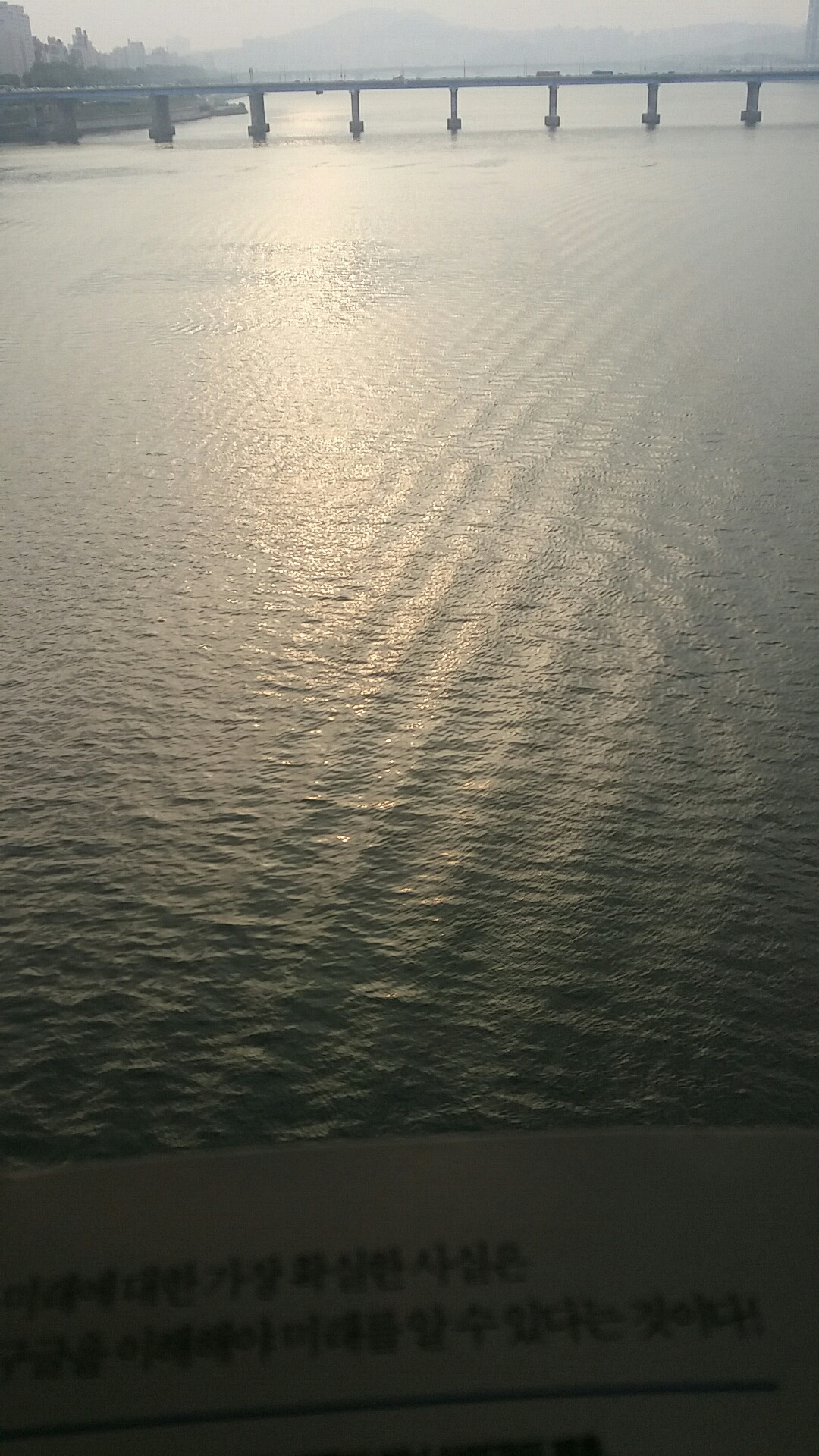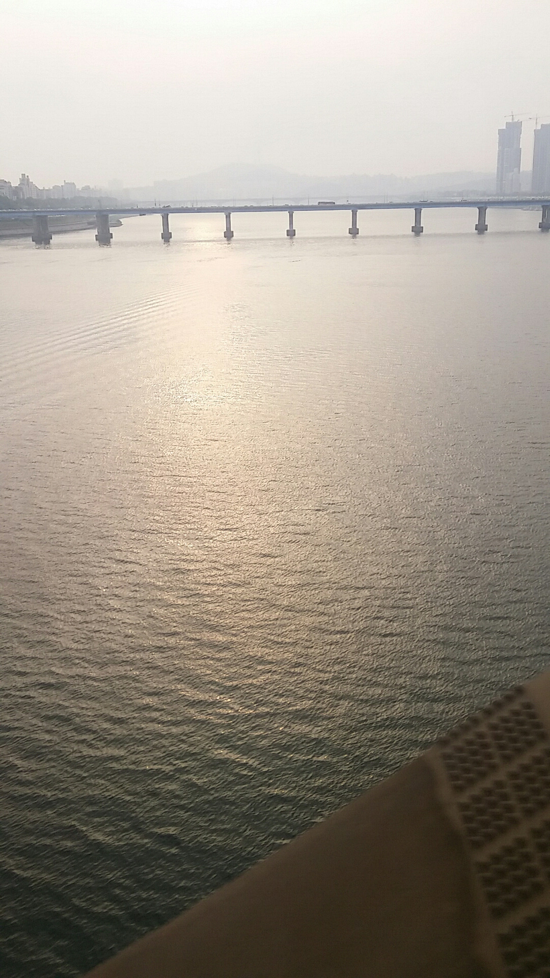강의시작이 7:30 PM, 그것도 선릉역 근처라 저녁은 핫바 하나로 떼우고 선릉역으로 향한다. 한강을 지나는 지하철 풍경이 꽤 볼 만하다.