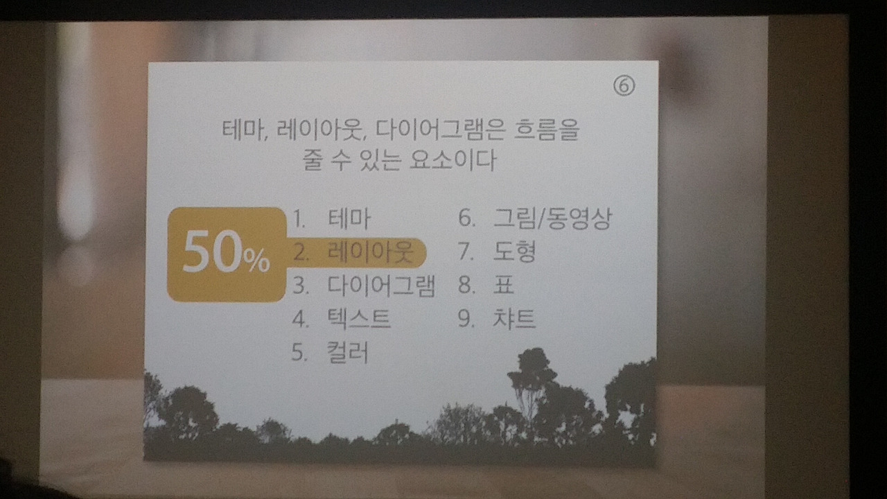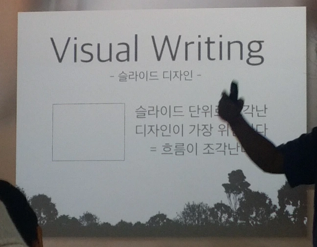 내가 매번 찾아 듣는 강의-'파워포인트 블루스'강사라는 표현이 더 적합하다-를 아픈 발을 이끌고(기브스) 들으러 왔다. 물론 유료 강의다. 유료강의의 묘미는 이런 힘이 있다. 그냥 포기하기엔 기회비용이 무척이나 크기 때문이다.