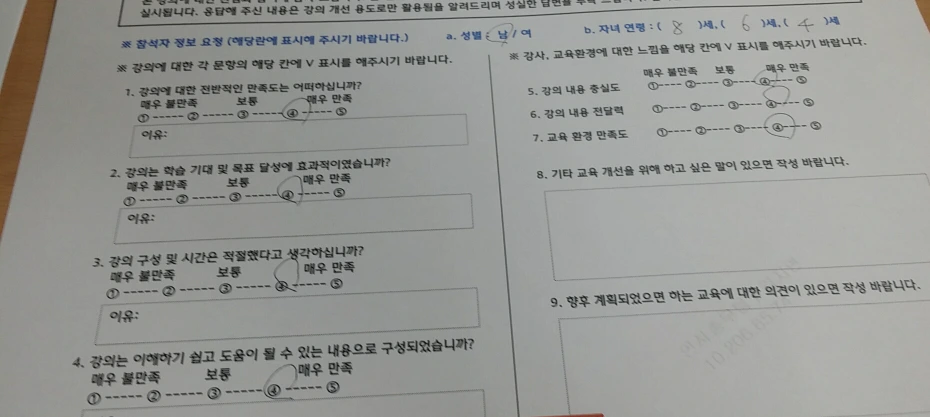 끝나고 강의 설문조사의 평균 점수가 4점(최대 5점)이다.