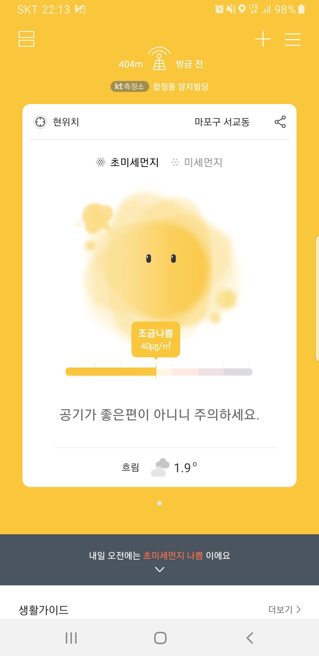 미세 정보 앱은 기본은 미세먼지를 잘 제공하면 된다.