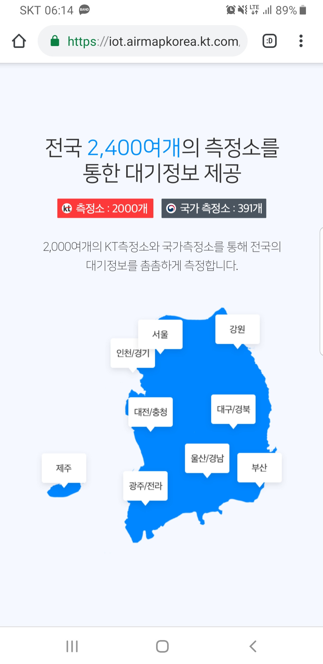 .전국 400여 개 국가 측정소와 2천여 개 KT 측정소에서 실시간으로 미세먼지 데이터 측정