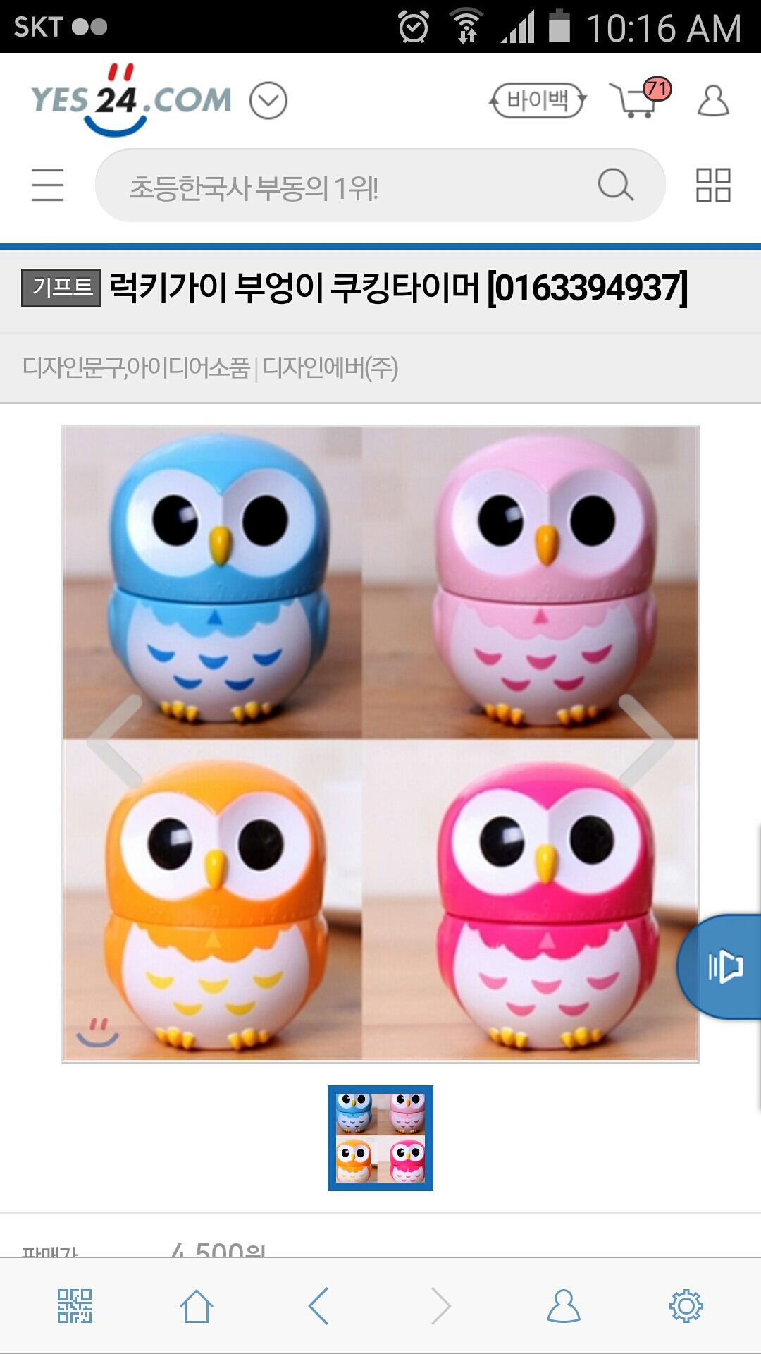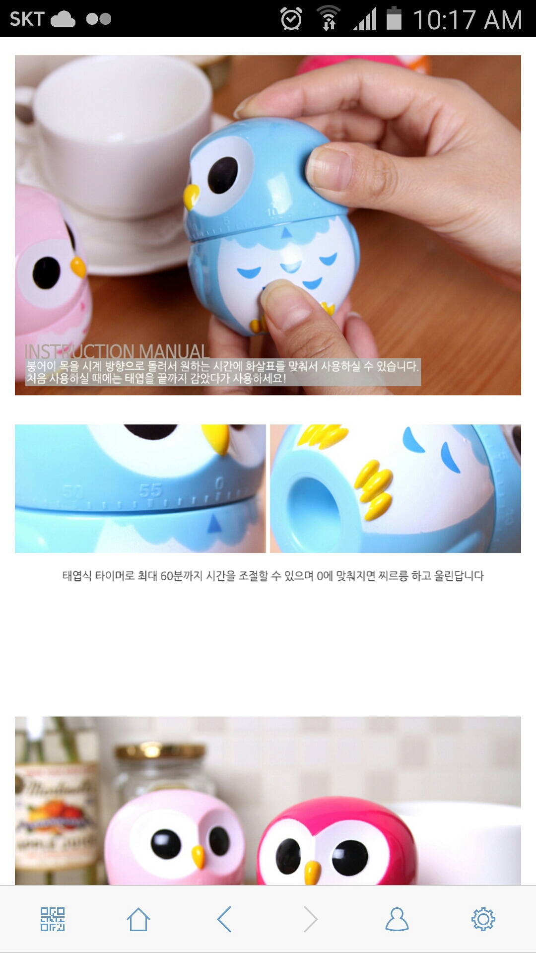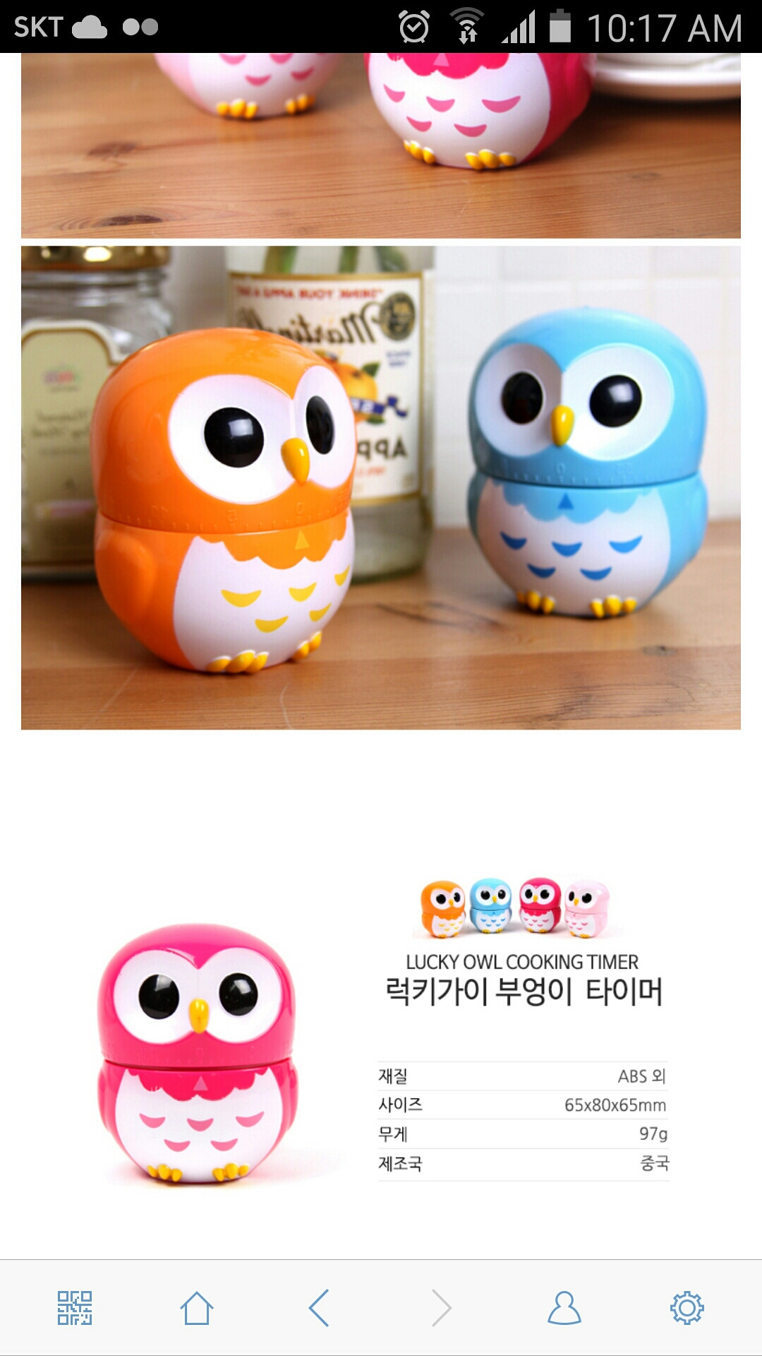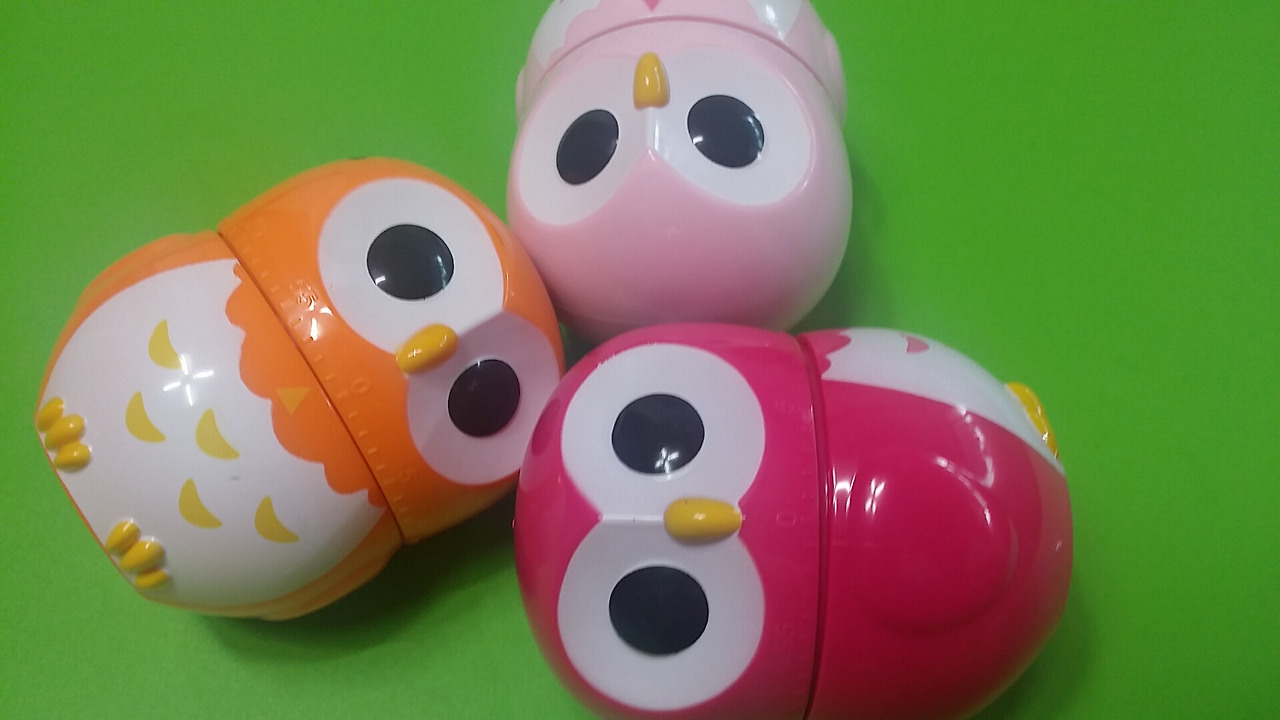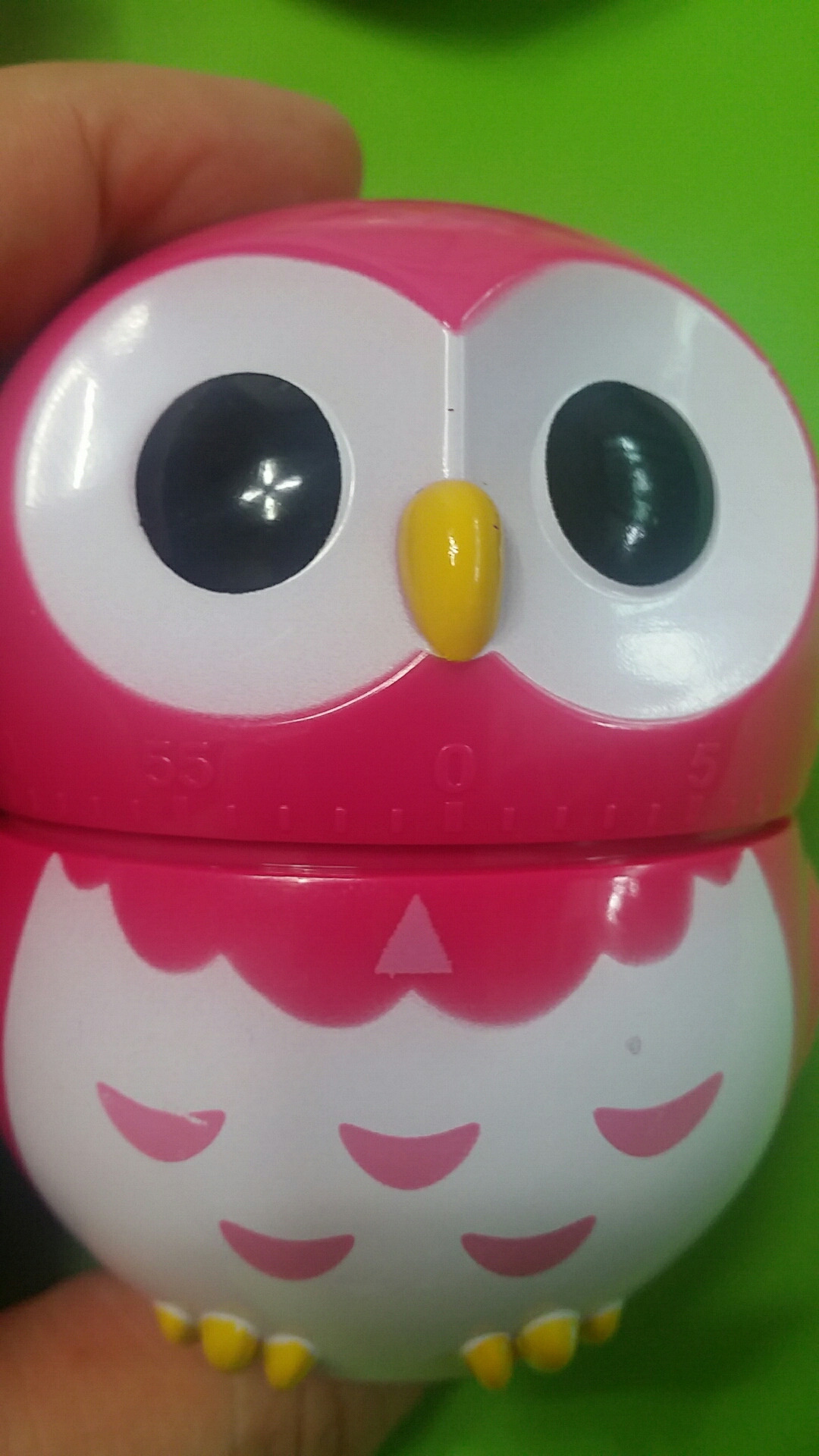 그래서 골라 본 것이 쿠킹 타이머다. 아이의 눈높이에 맞추어 이쁜 디자인으로 찾아 보았다. 보이 부엉이의 머리를 돌려서 분를 맞추어 놓으면 제자리에 돌아오면 소리가 나는 것이다. 시간은 60분까지며 5분마다 눈금에 숫자가 매겨져 있었다.
