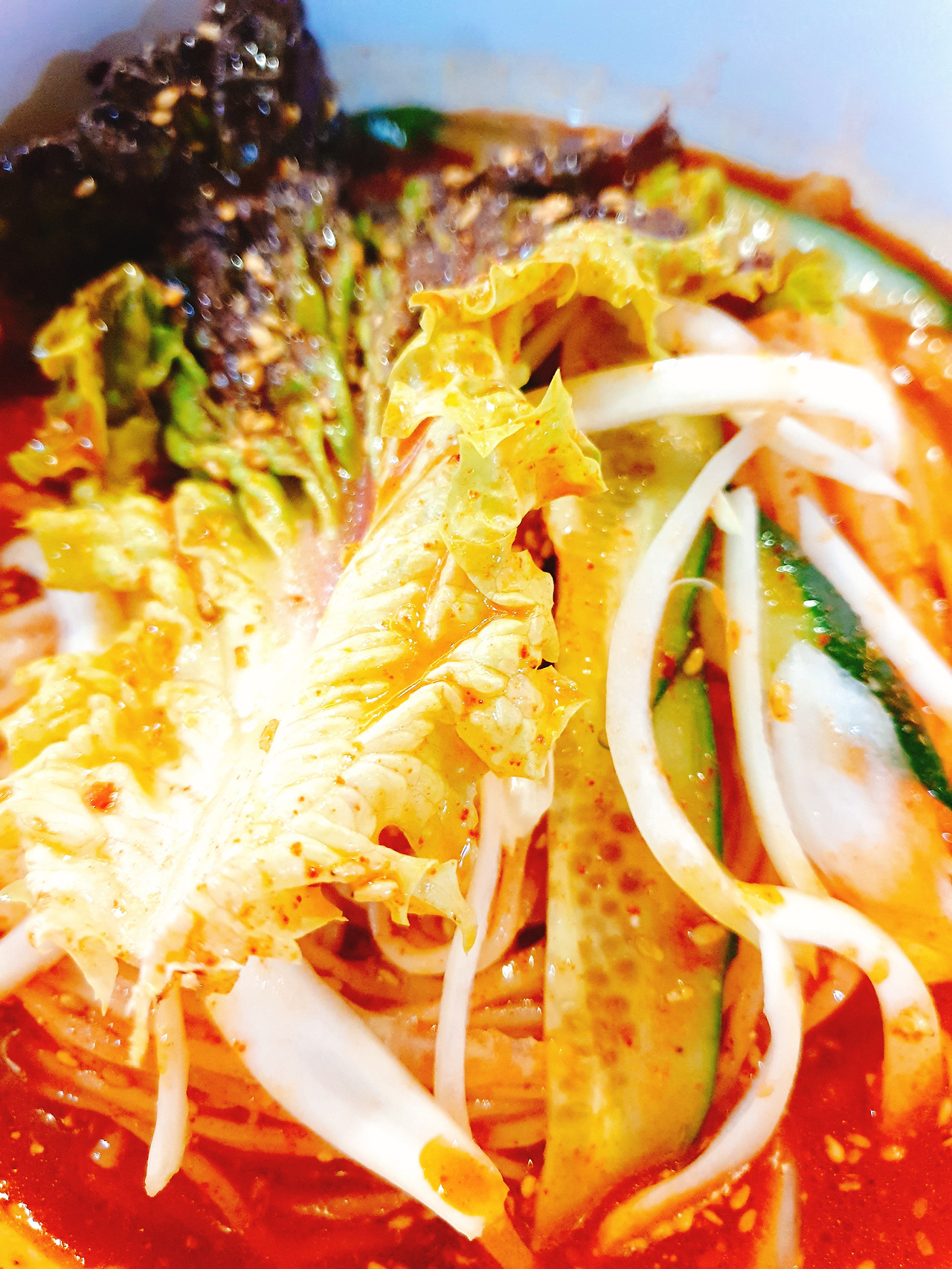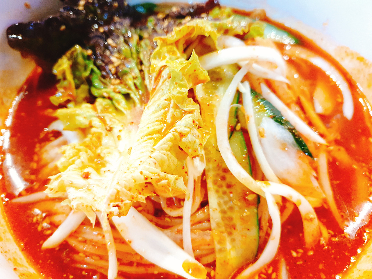 비빔국수 국물도 걸쭉 그 자체, 맵지 않음