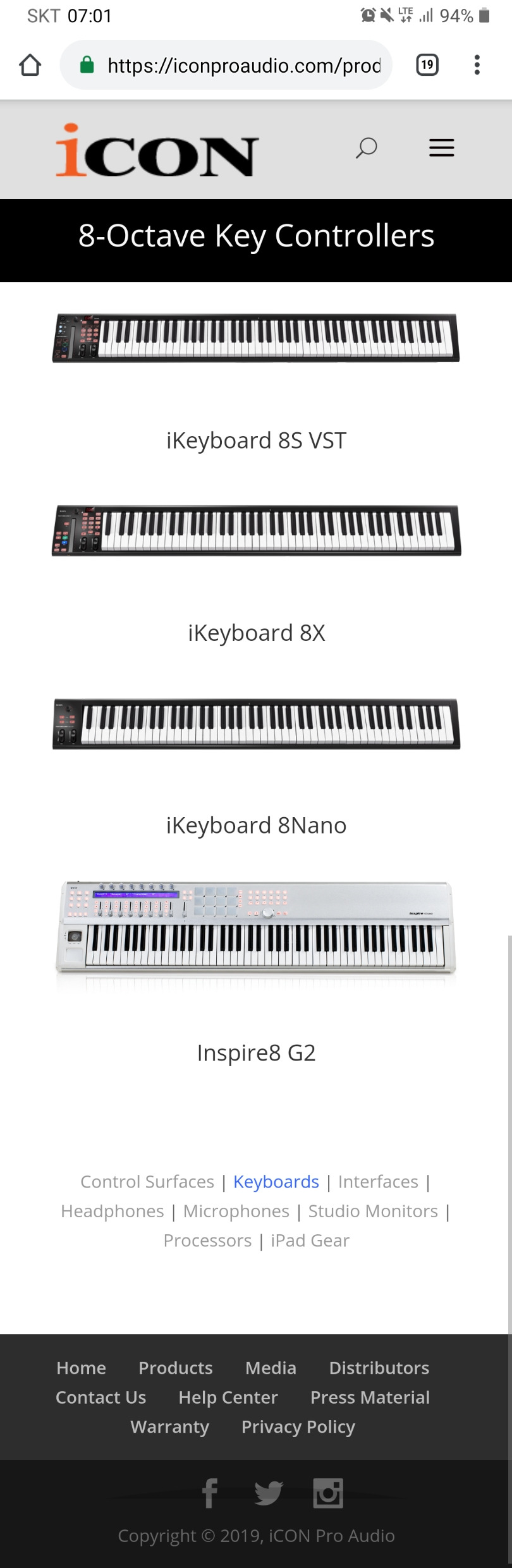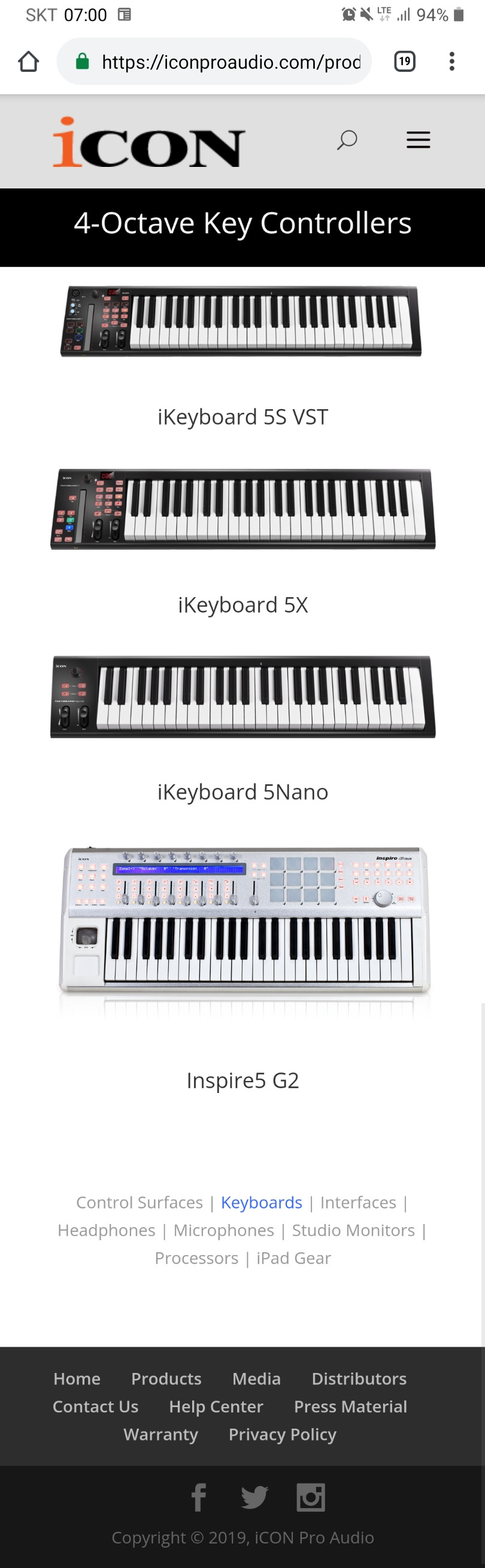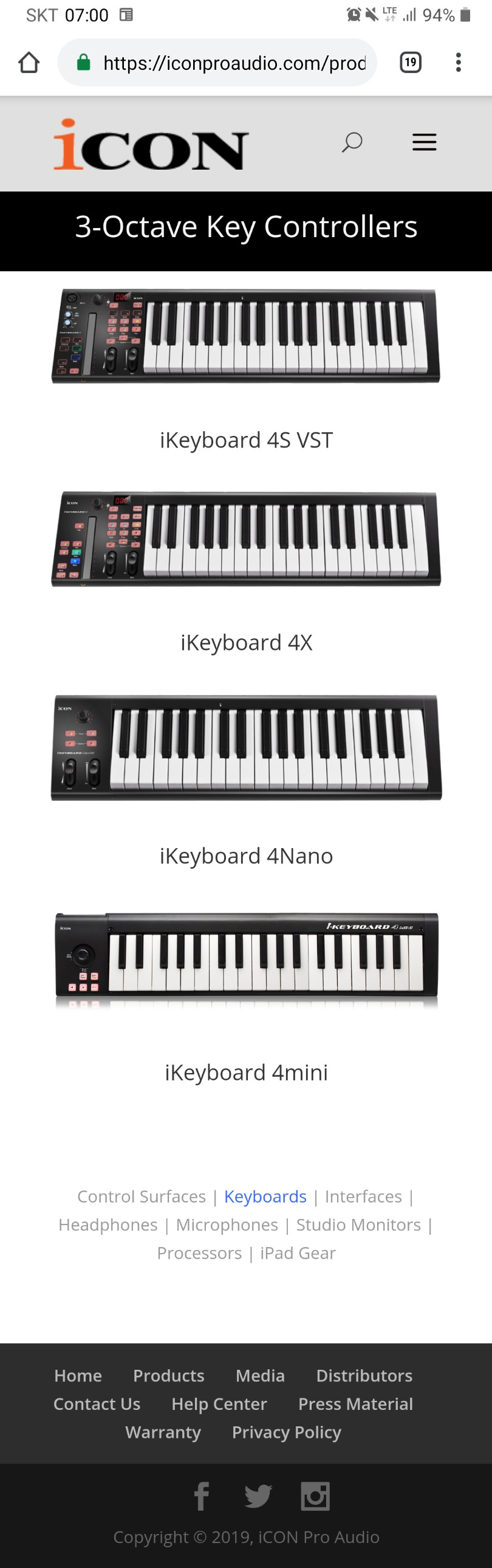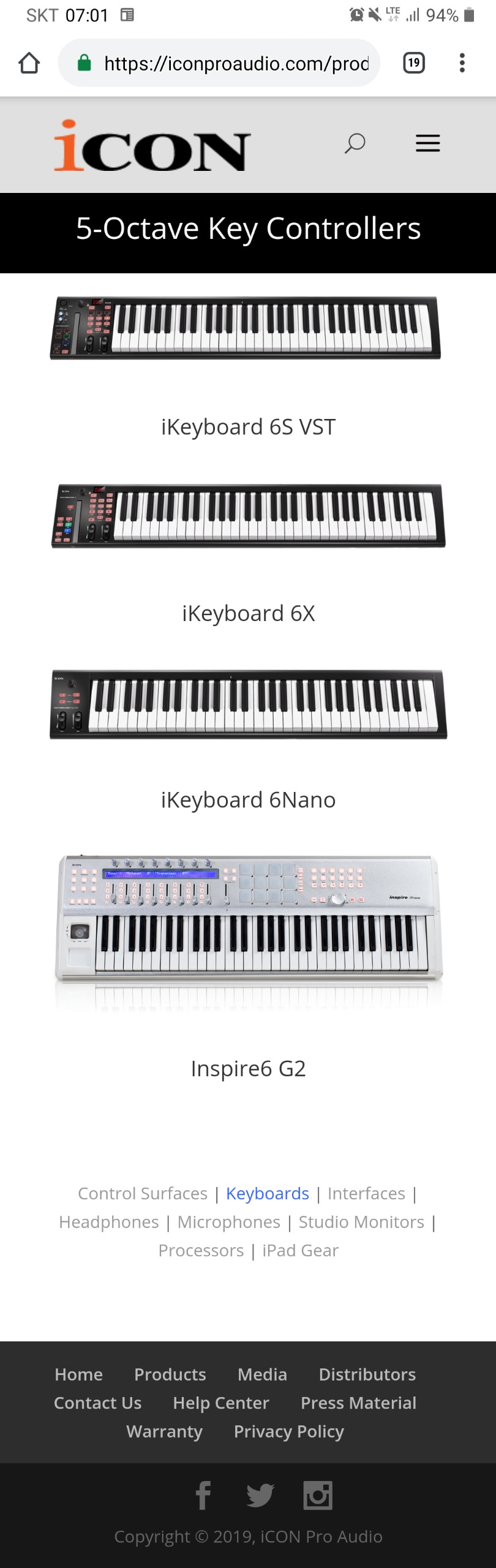 아이콘의 미디키보드 오디오인터페이스등 음악에 관련된 제품을 아이콘 홈페이지에서 확인이 가능하다.