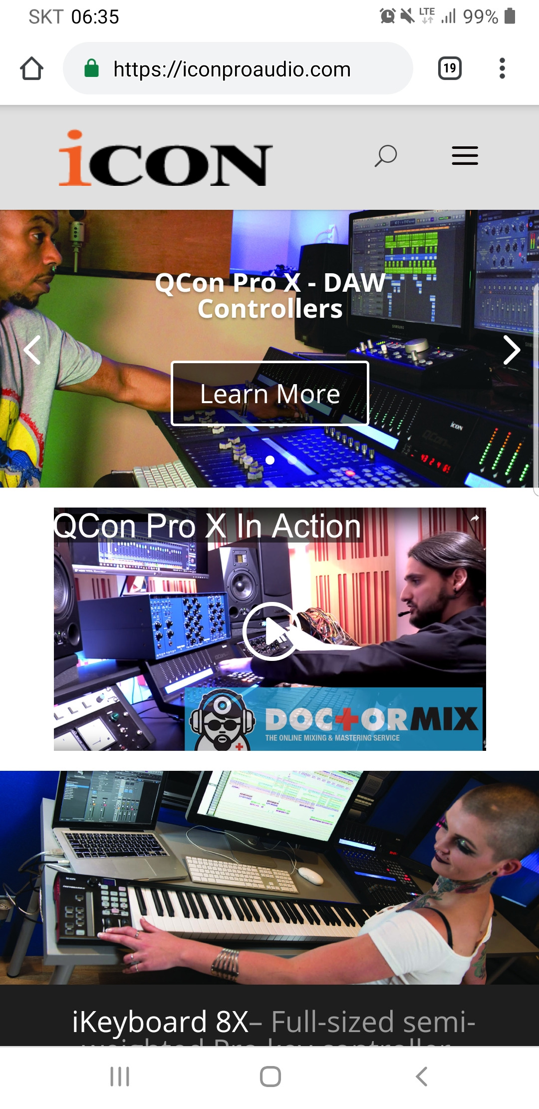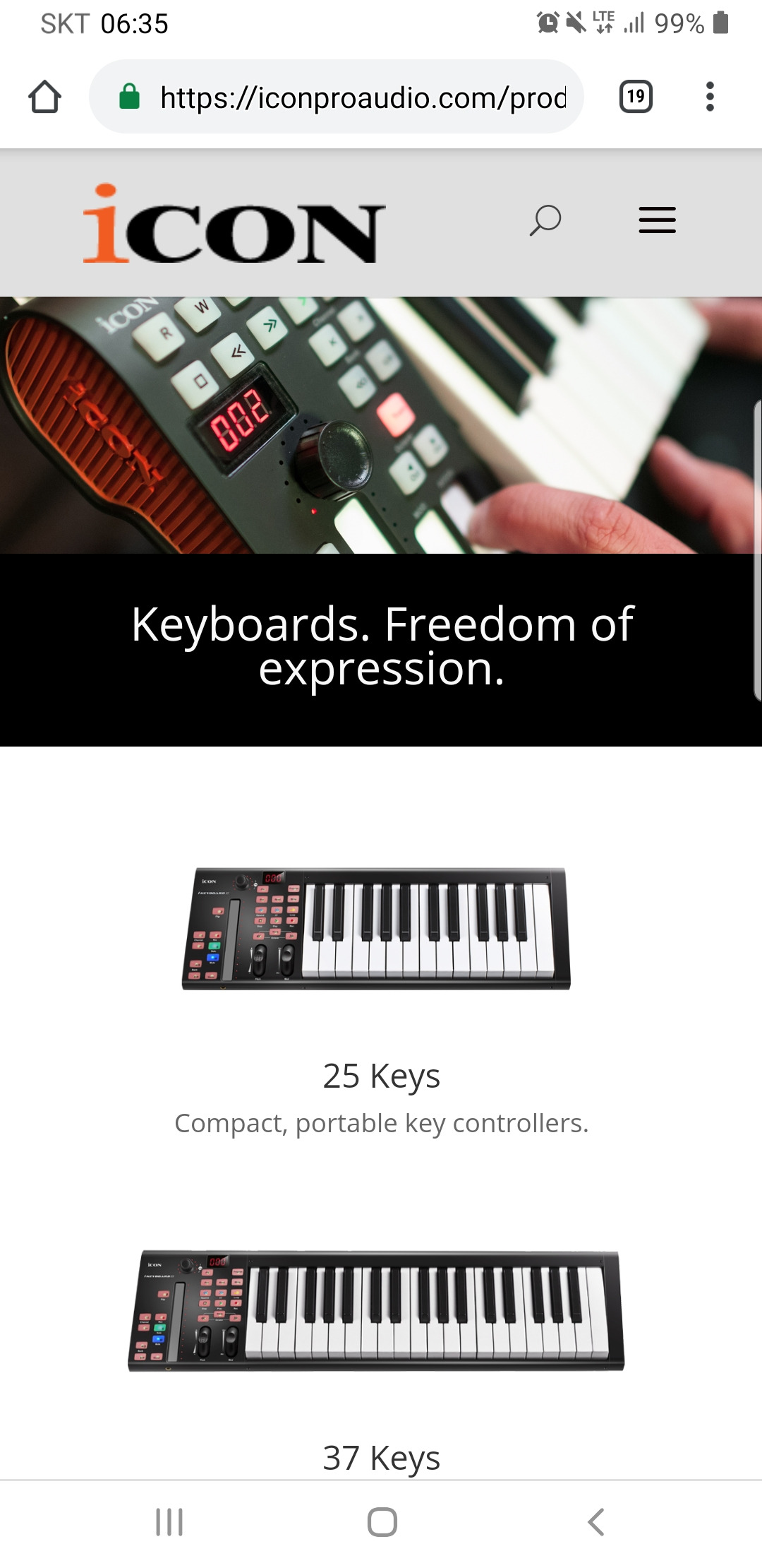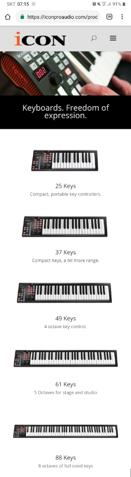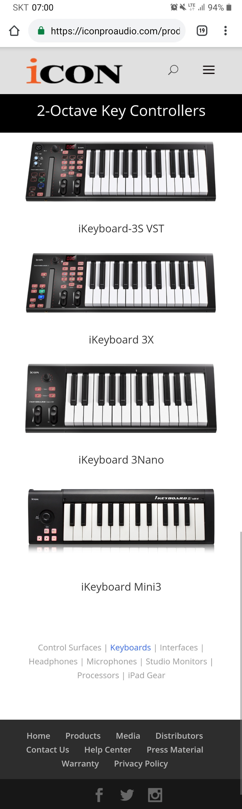 아이콘의 미디키보드 오디오인터페이스등 음악에 관련된 제품을 아이콘 홈페이지에서 확인이 가능하다.