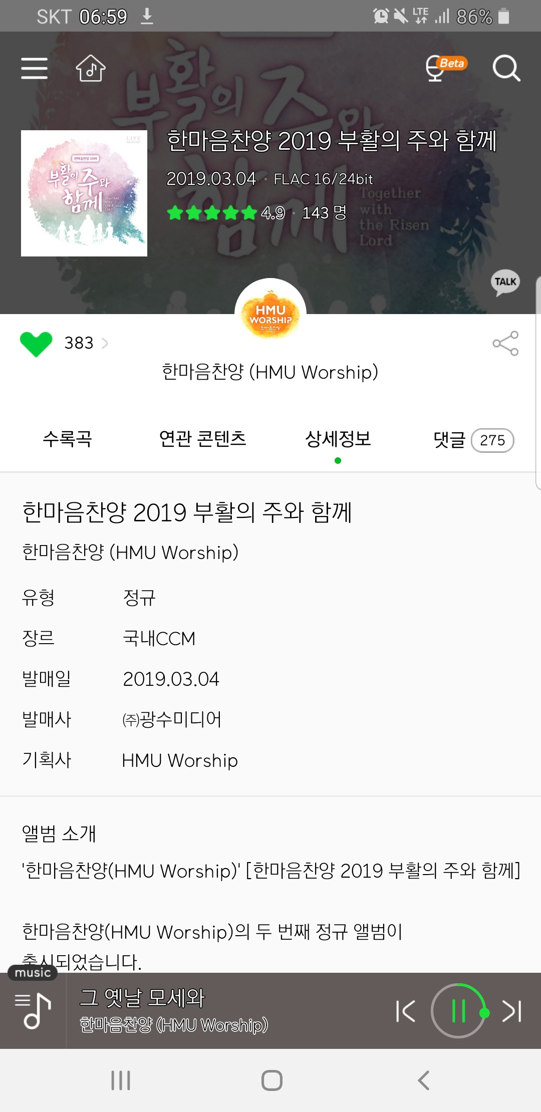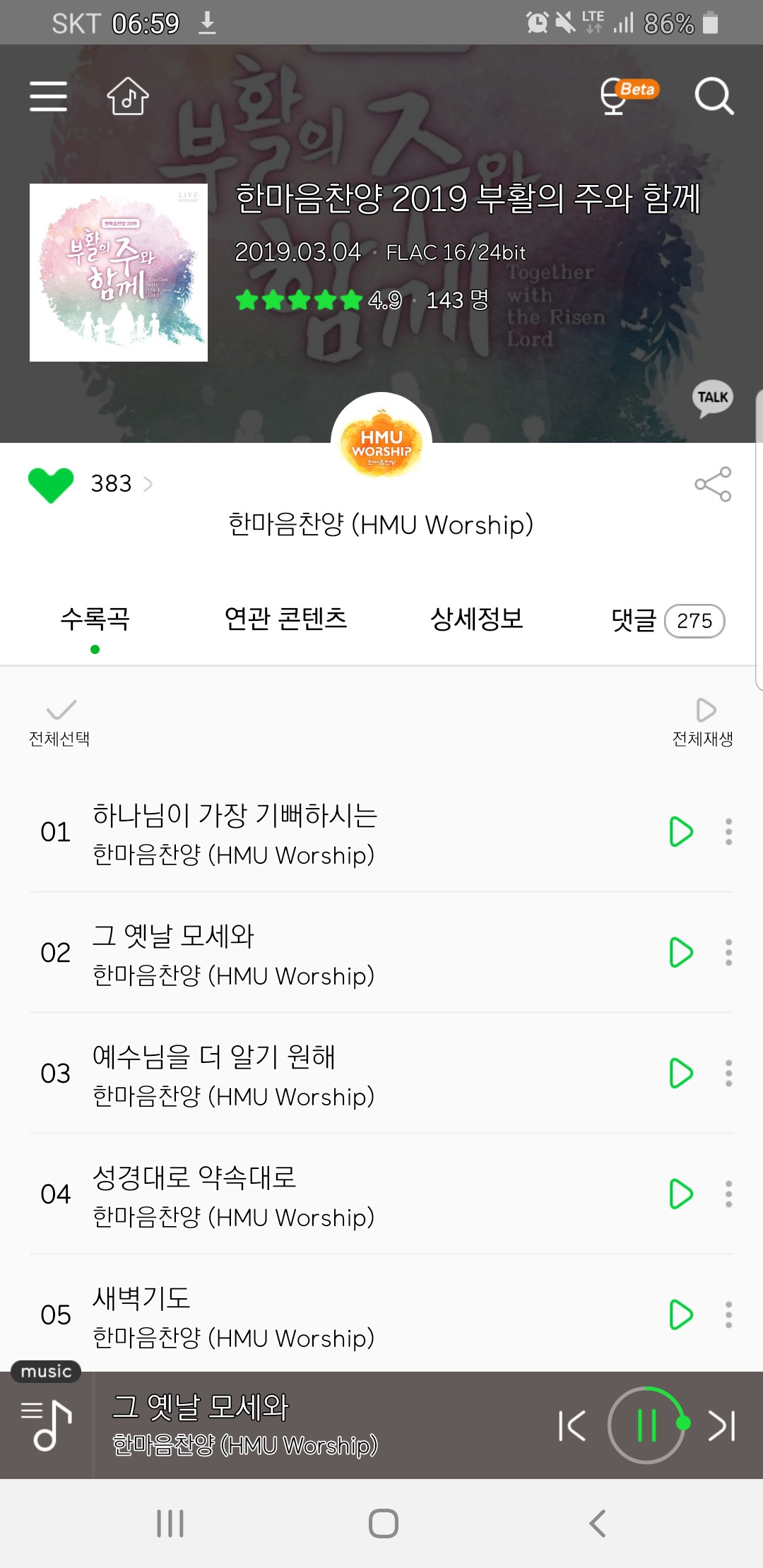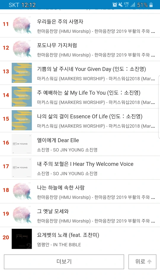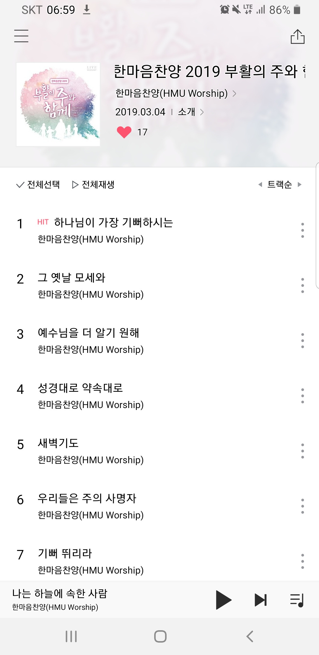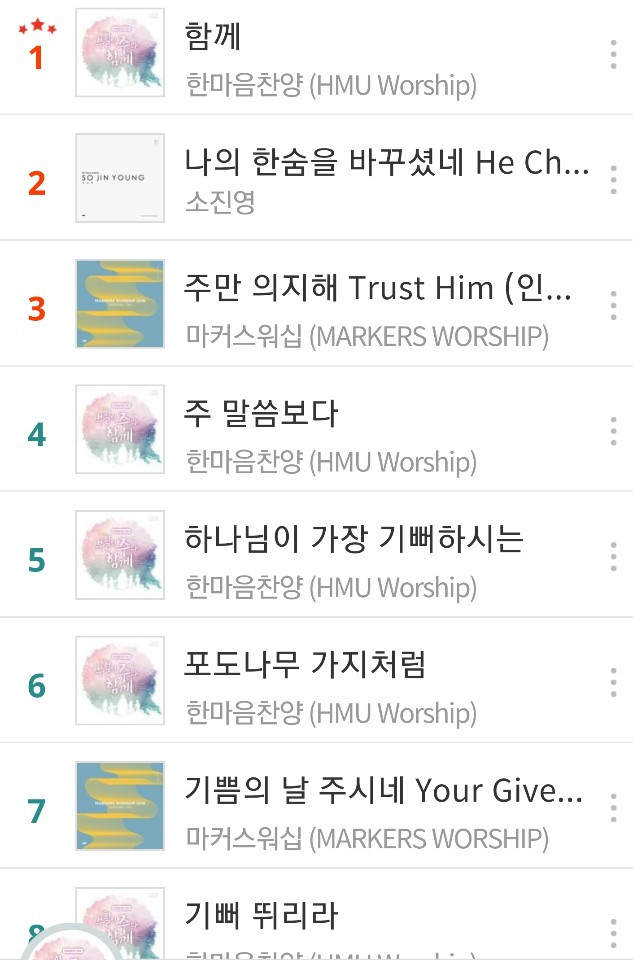 멜론에서 한마음 찬양으로 검색하면 된다.