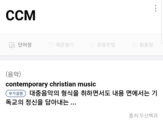CCM(음악) contemporary christian music 대중음악의 형식을 취하면서도 내용 면에서는 기독교의 정신을 담아내는 ...