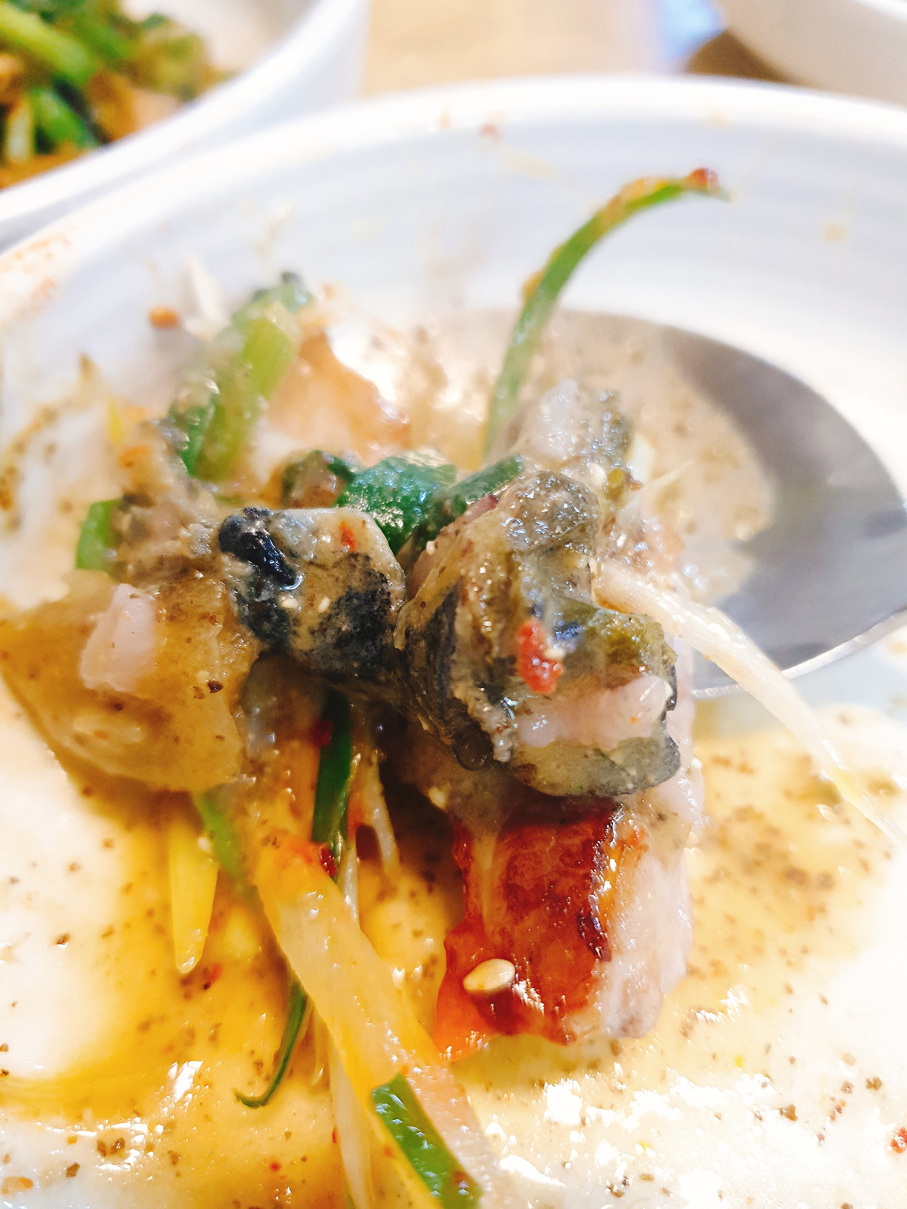 우렁추어탕에 삼겹 나름 조합이 끈끈함이다.