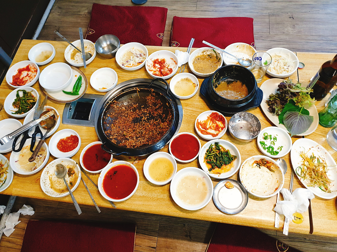 조금 늦었다. 일단 삼겹살 4인에 우렁추어탕으로 시작