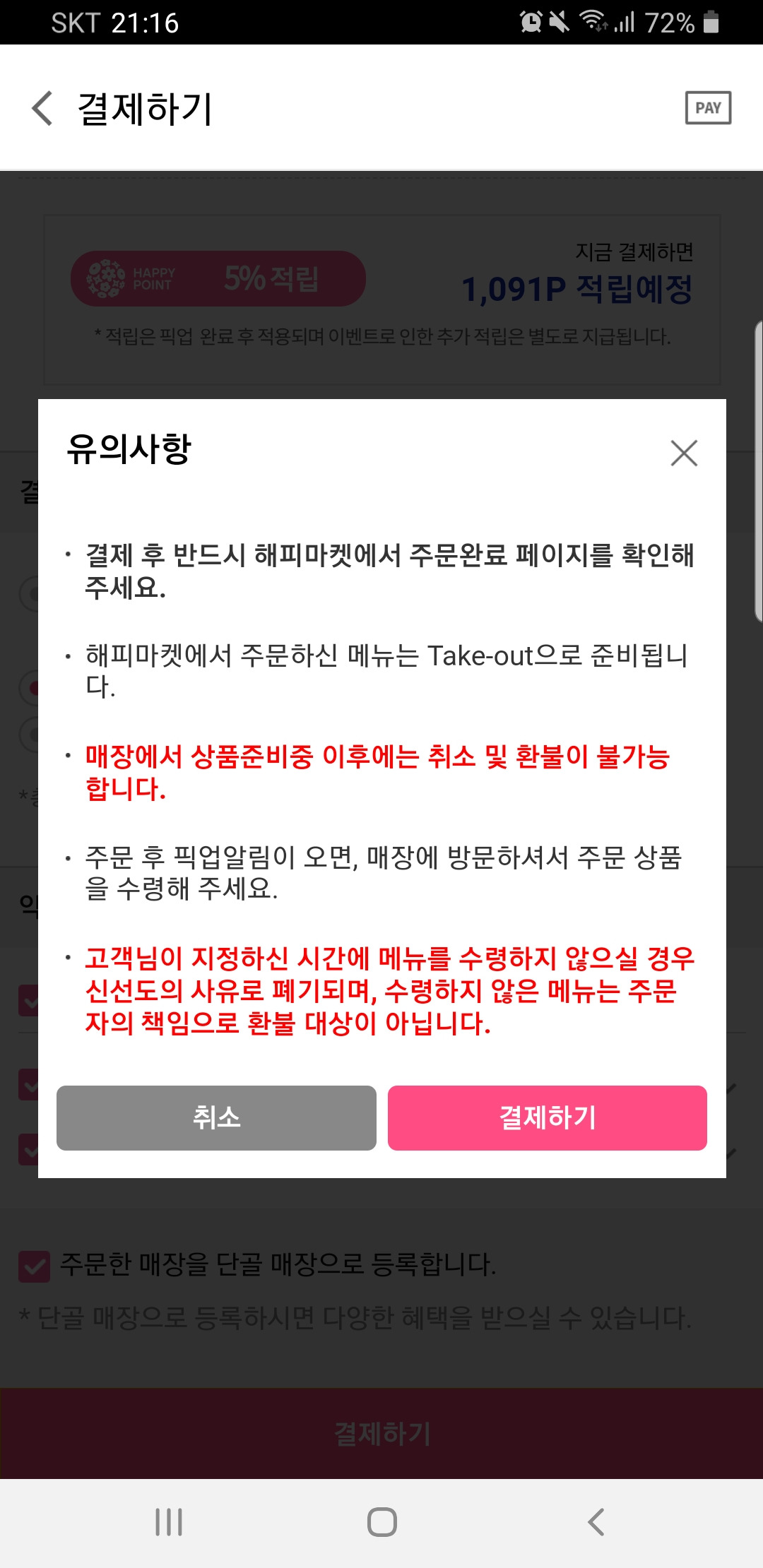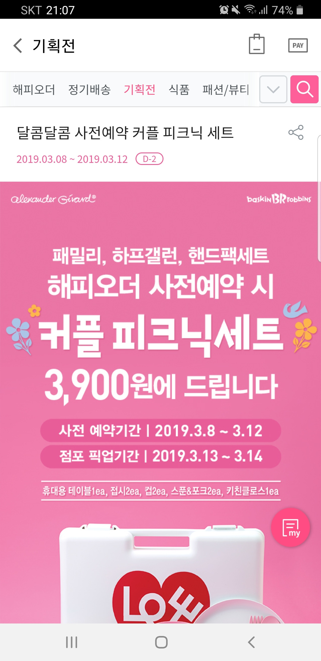 해피포인트앱,해피오더,베스킨라스빈,커플피크닉세트