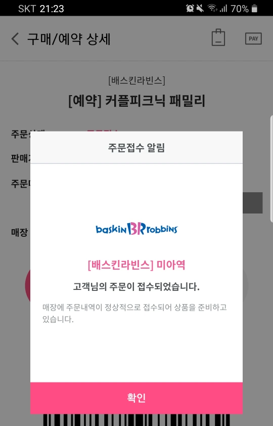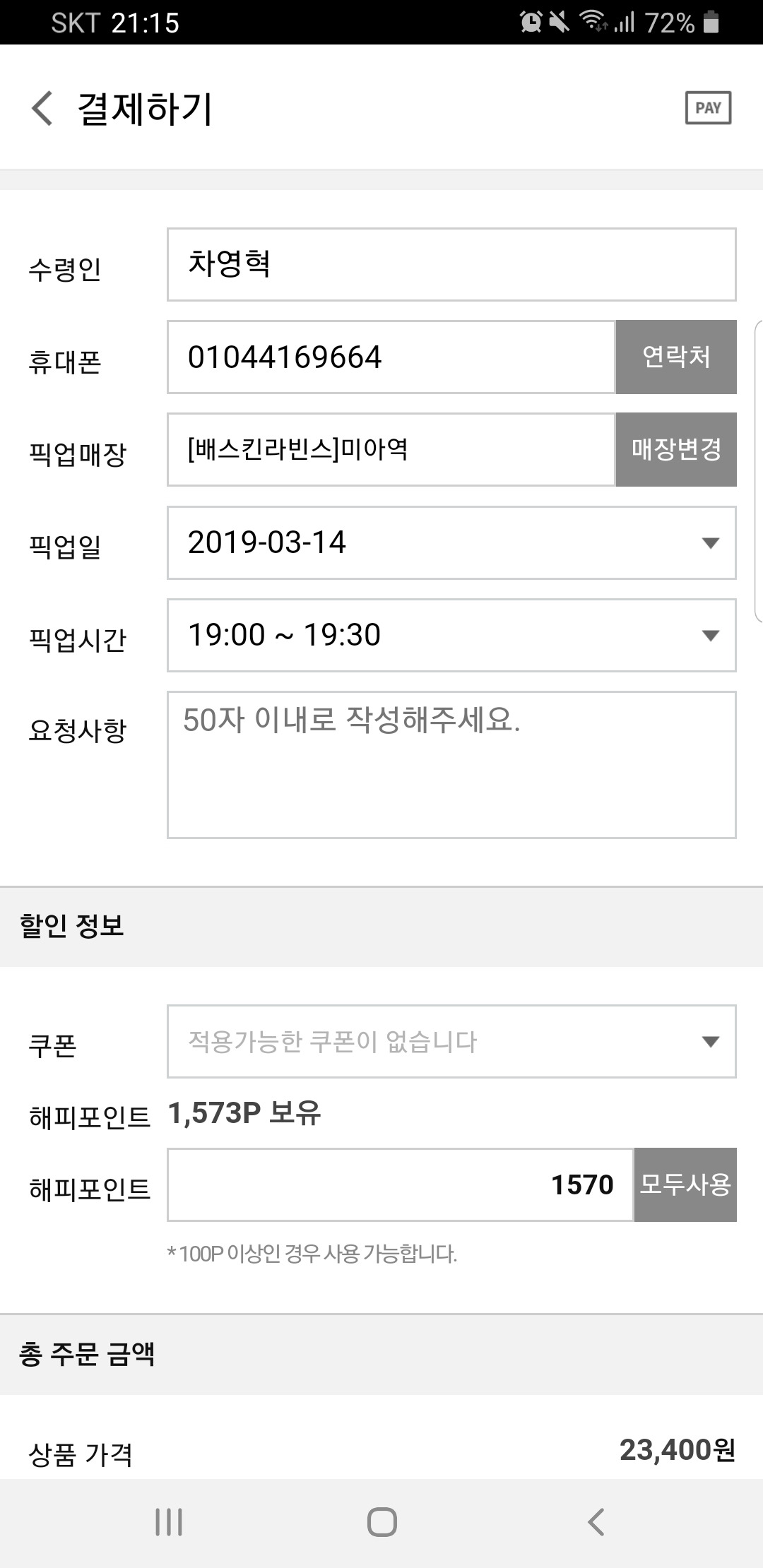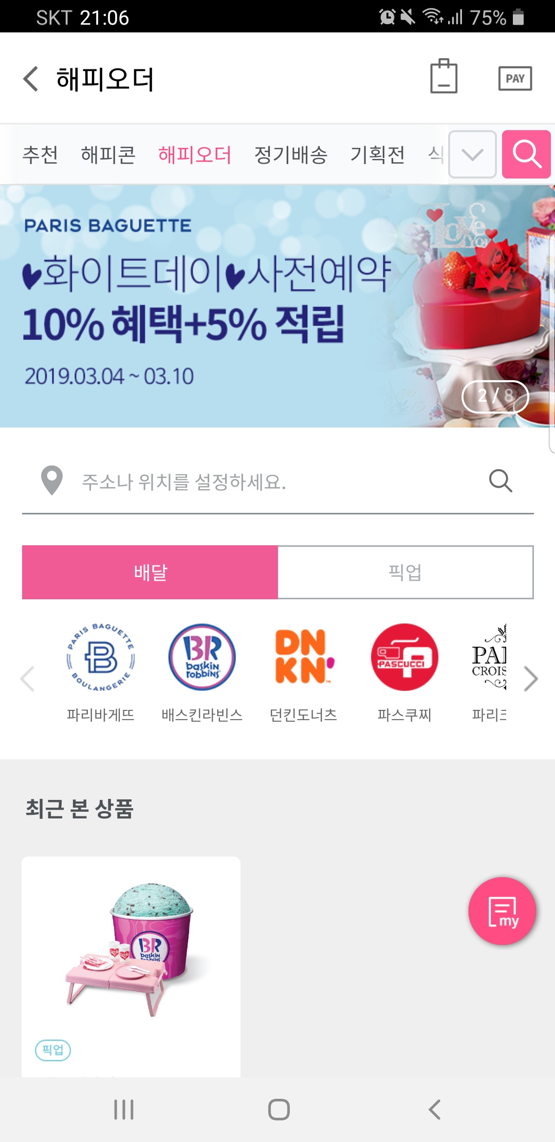 해피오더로 던킨만 접하다가 이번에는 베스킨라빈스다.