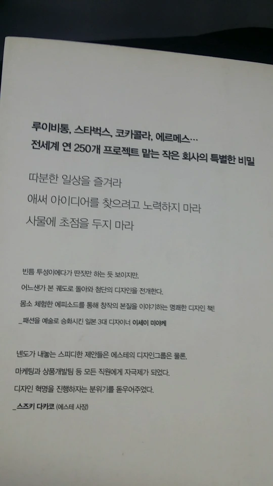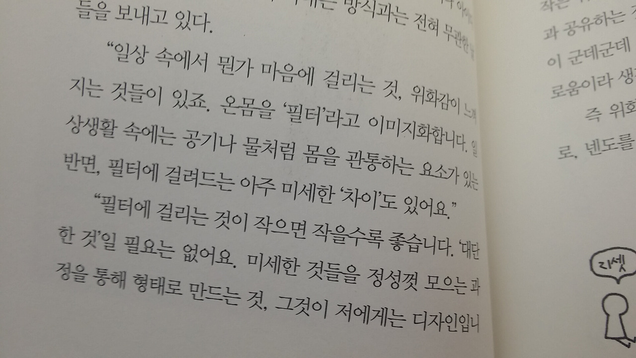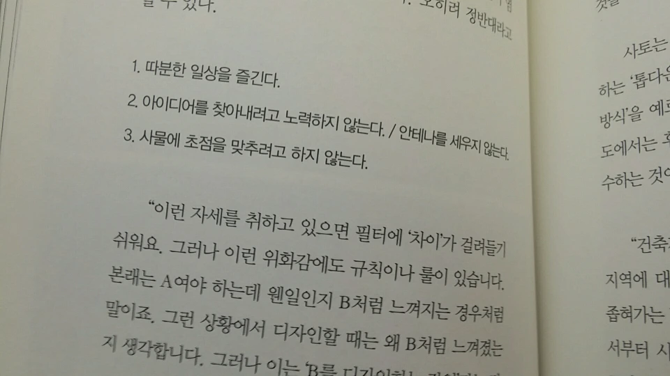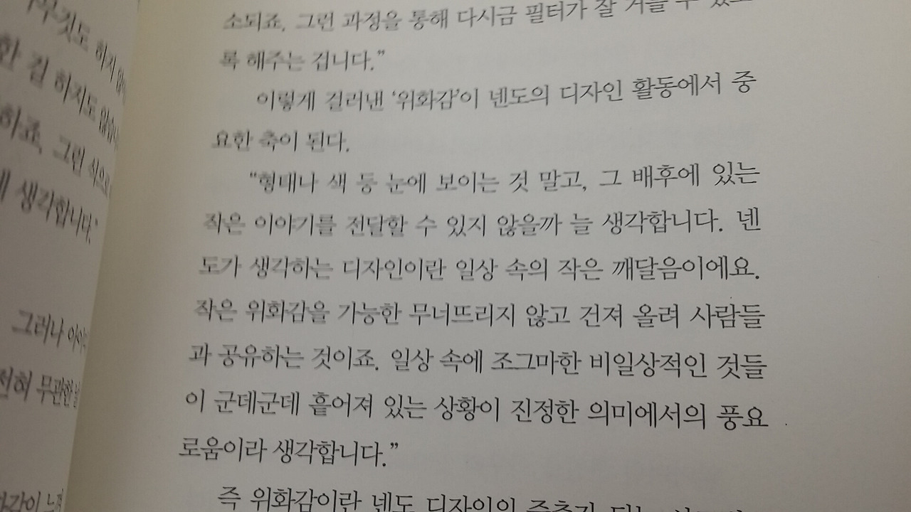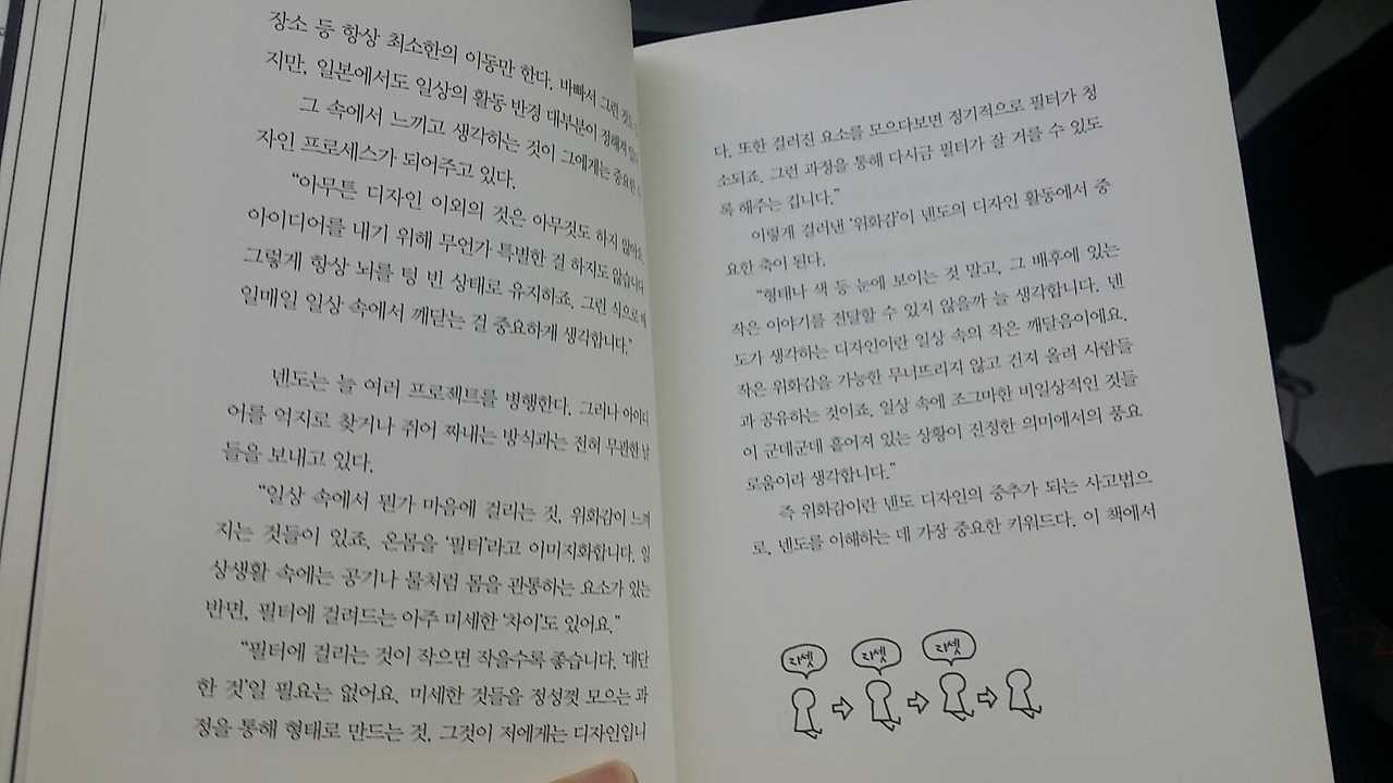읽기 순서가 있다면, "넨도, 디자인 이야기"를 먼저 권한다. 나 또한 문제해결연구소를 읽다가 책을 빌려서 순서를 바꾼다. 그리고 도서 구매목록으로 담아둔다. 시작은 대담할 수 없다. 더 조심스러우며, 자신이 이야기 하고픈 의미를 강조하기 때문이다.