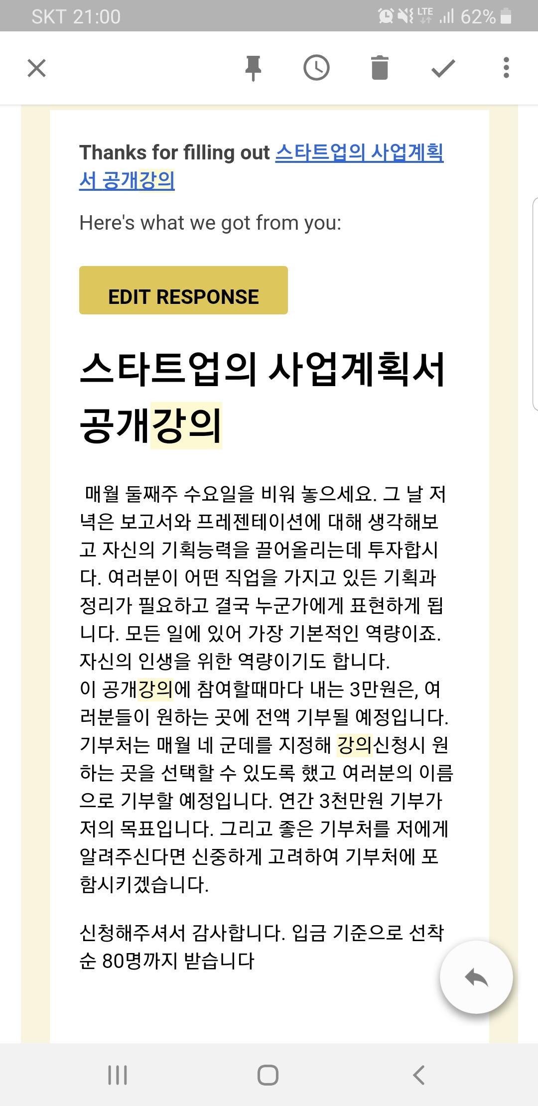 스타트업의사업계획서,공개강의,강의료는기부,제품