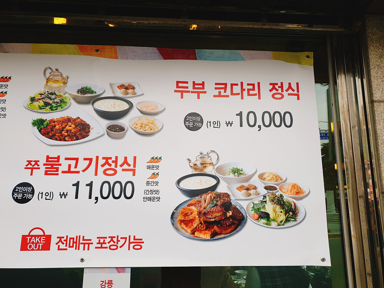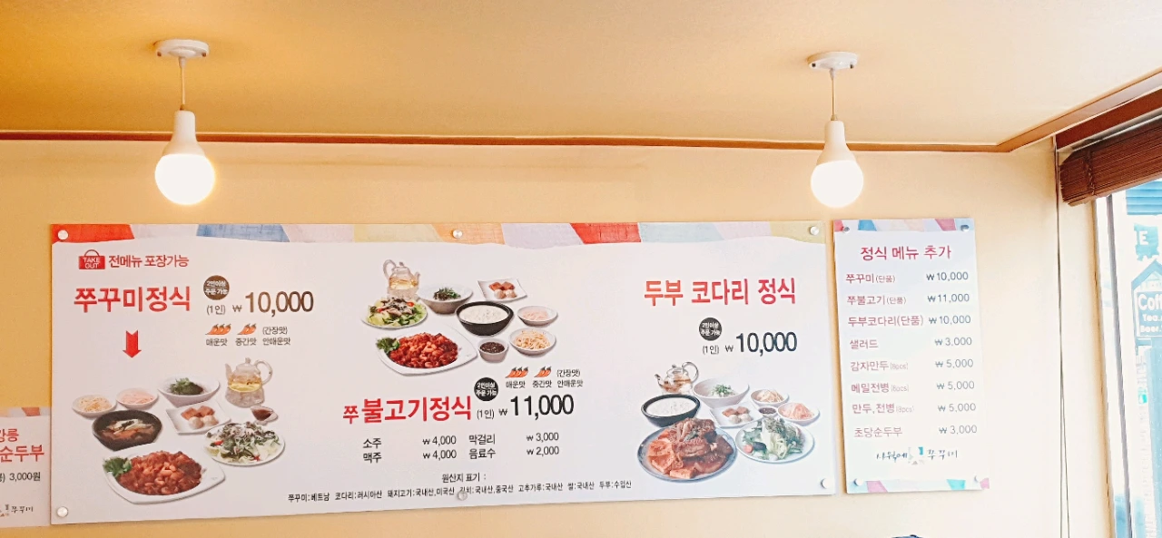 주문은 쭈불고기정식+두부 코다리 정식