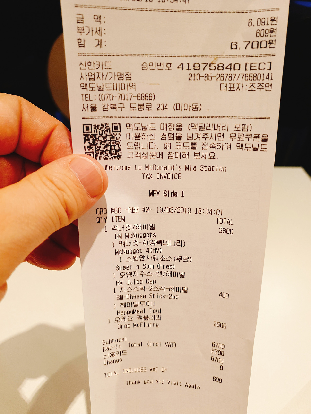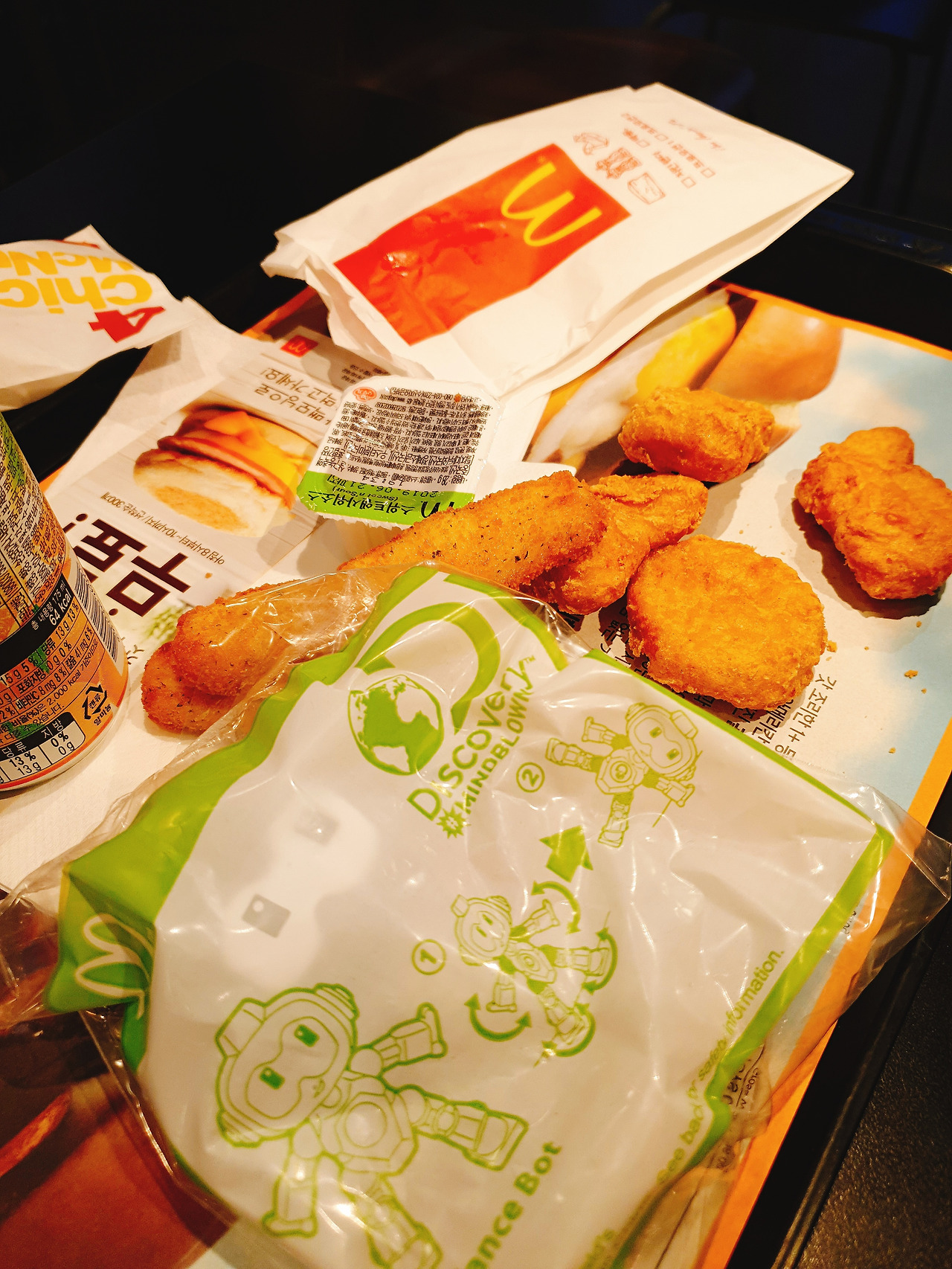 아슈크림 하나 먹으러 갔다가 썬데이와 맥플러리 밖에 없다 하여 자리에 앉아서 먹기 위해 해피밀까지