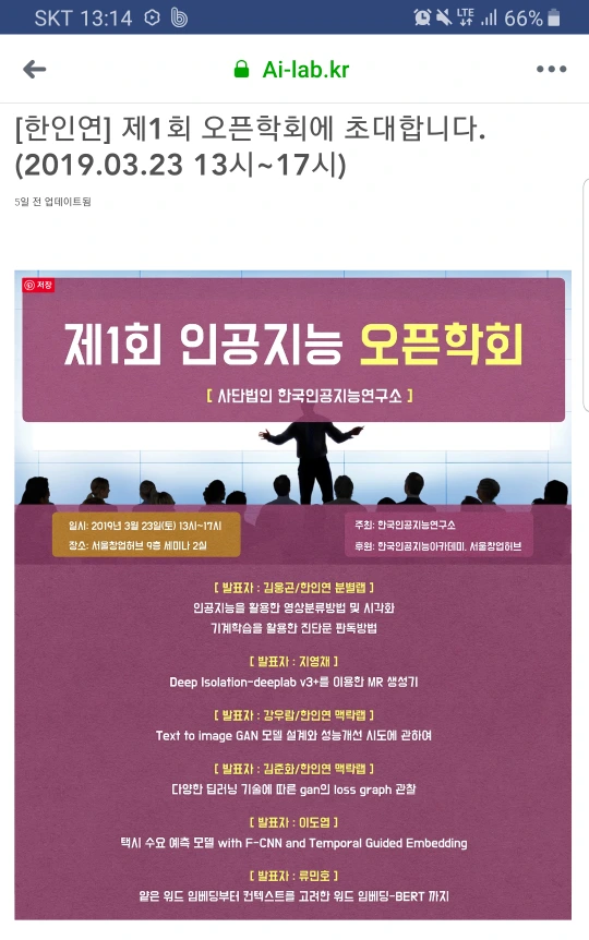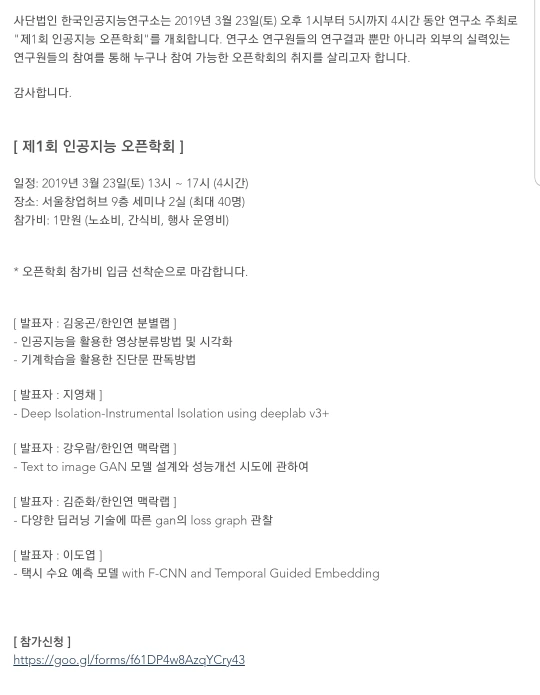 인공지능 오픈학회에 신청하고 참여한다.