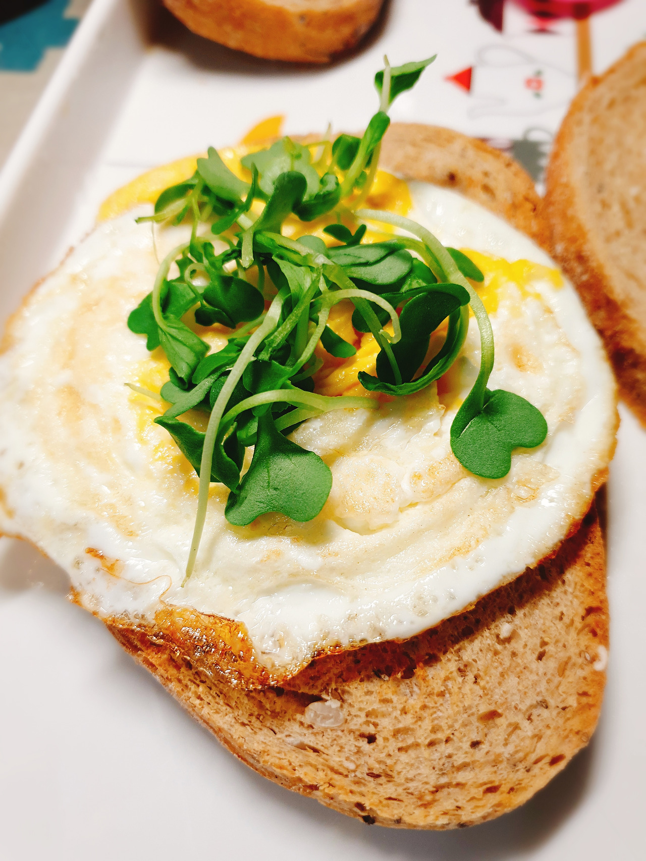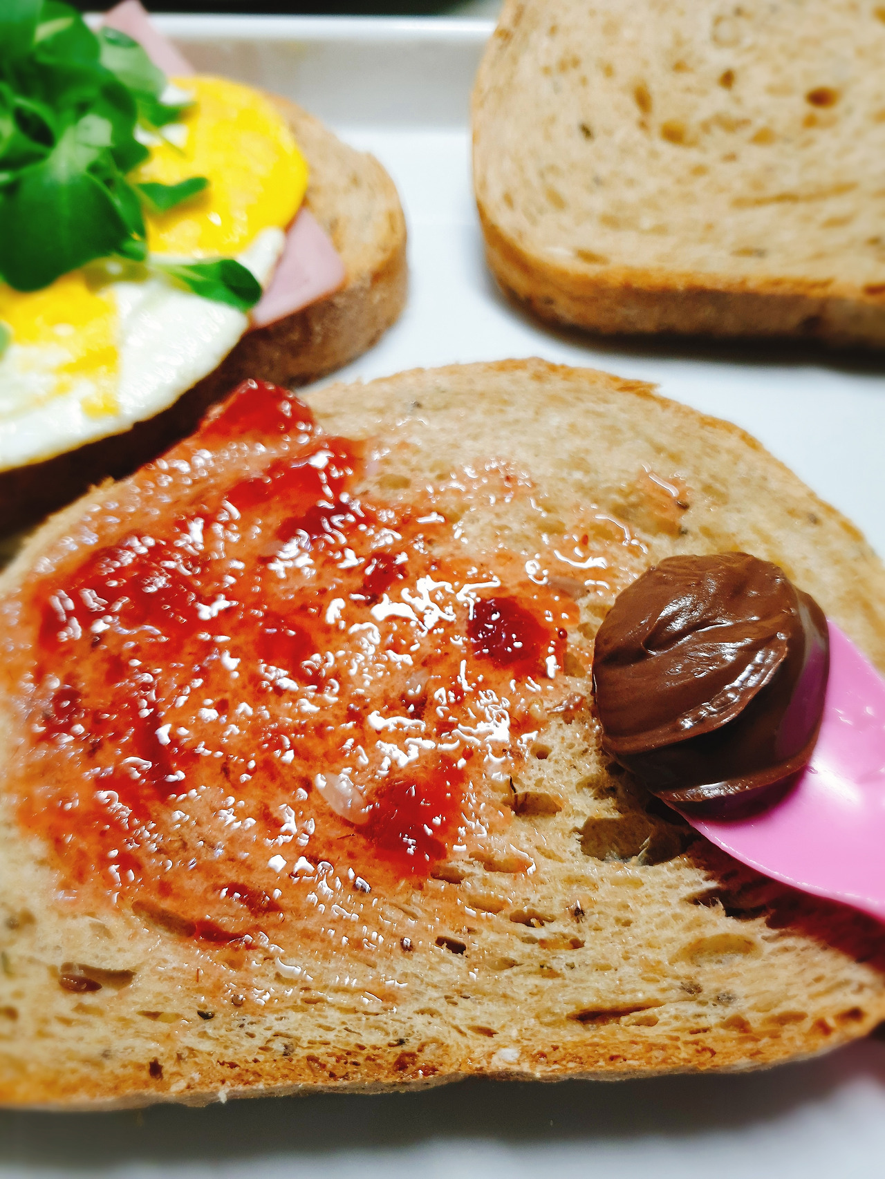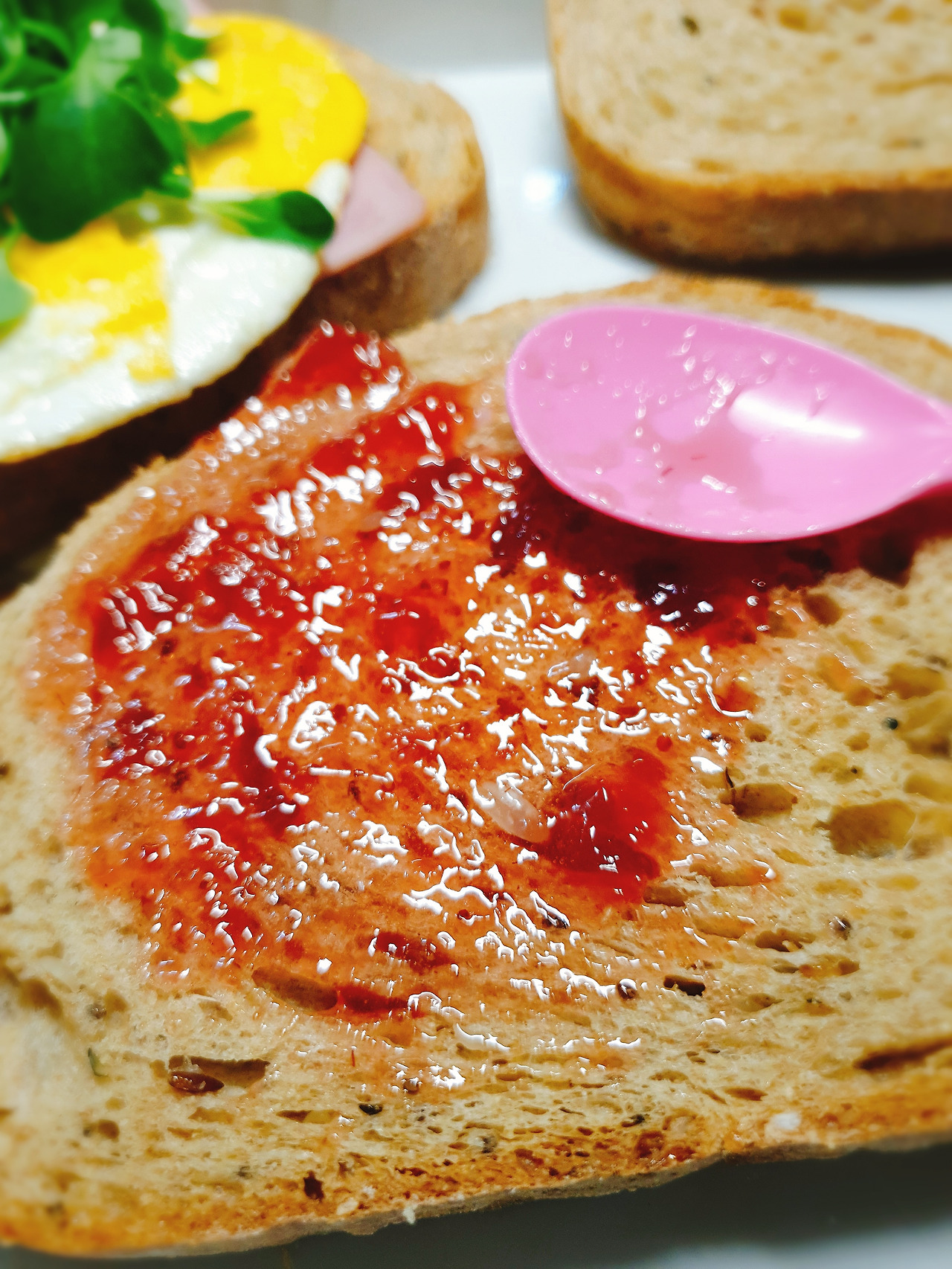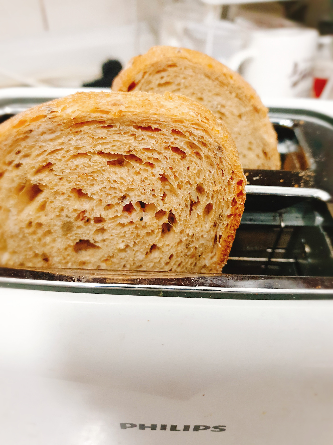 냉장보관된 빵을 토스트기로 해동시킨다.