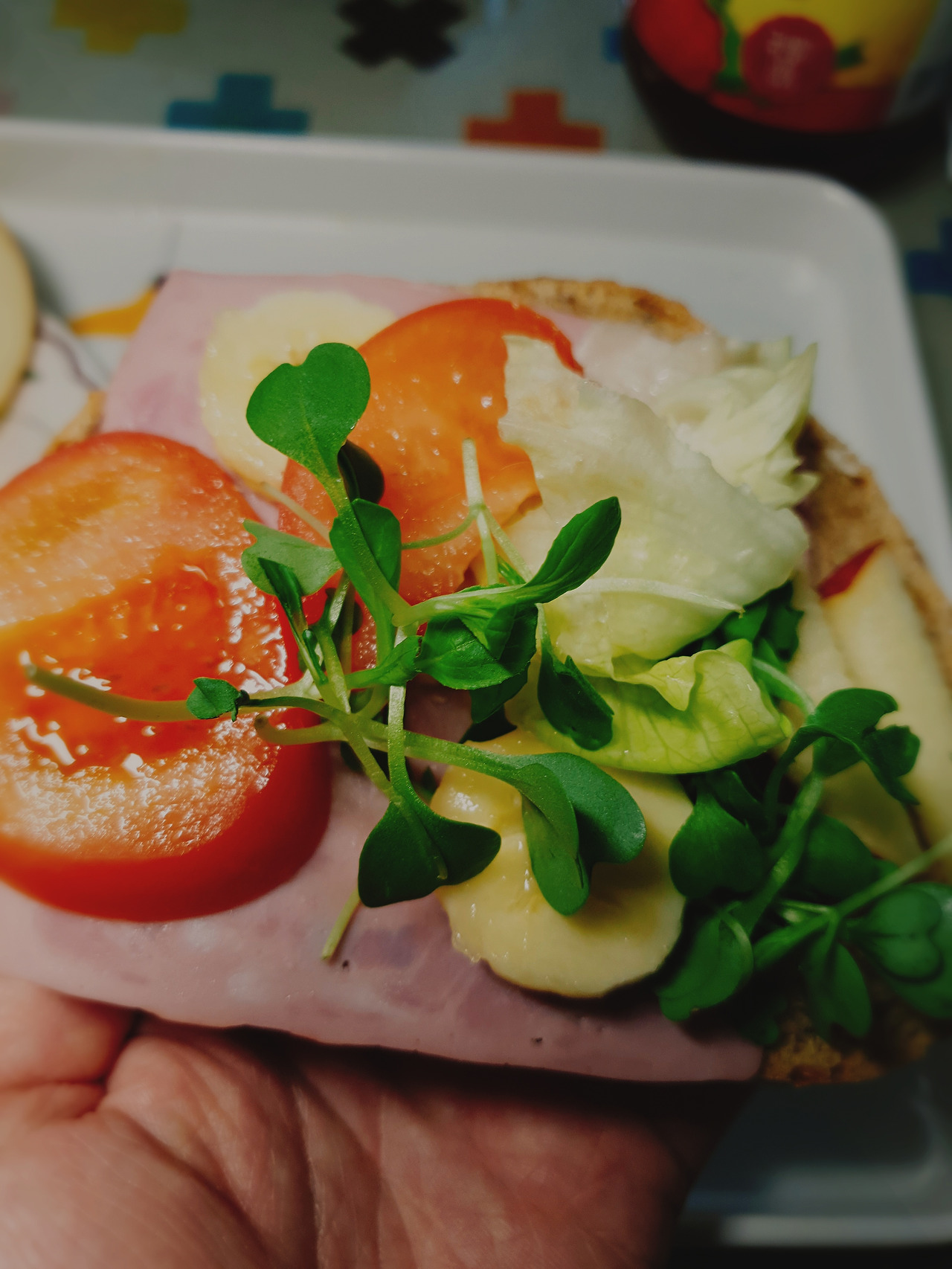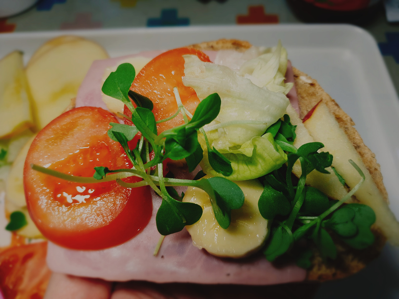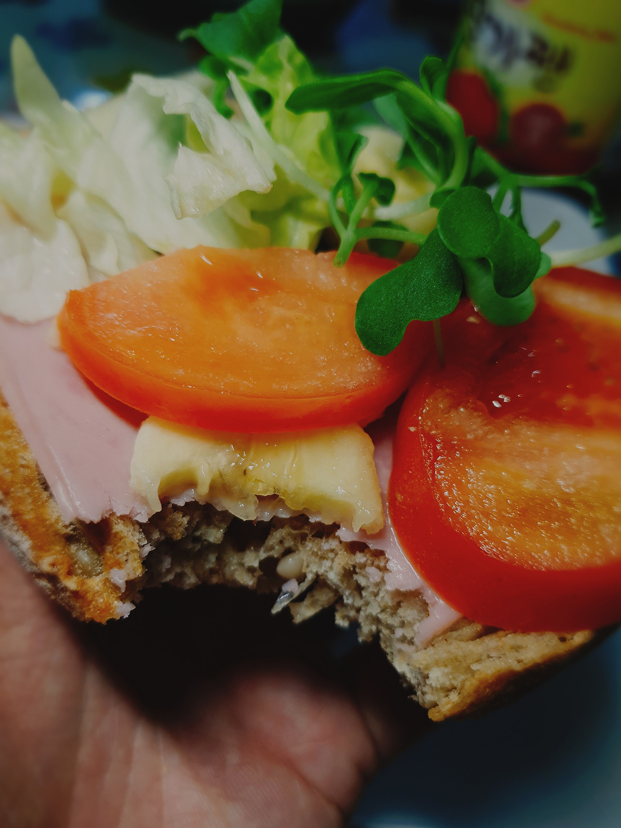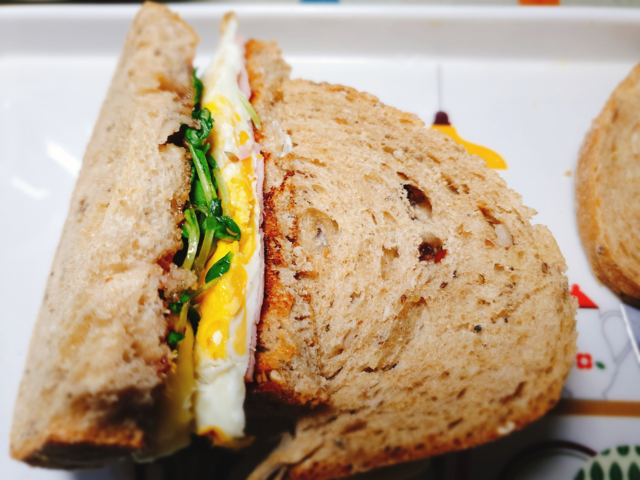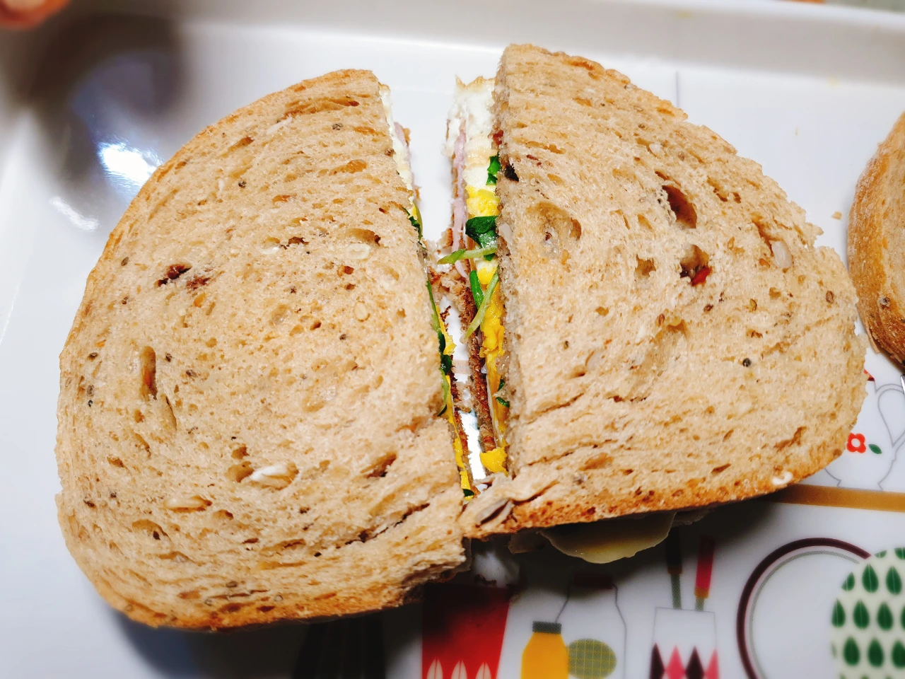 통밀빵으로 구성한 샌드위치 대 성공이다.