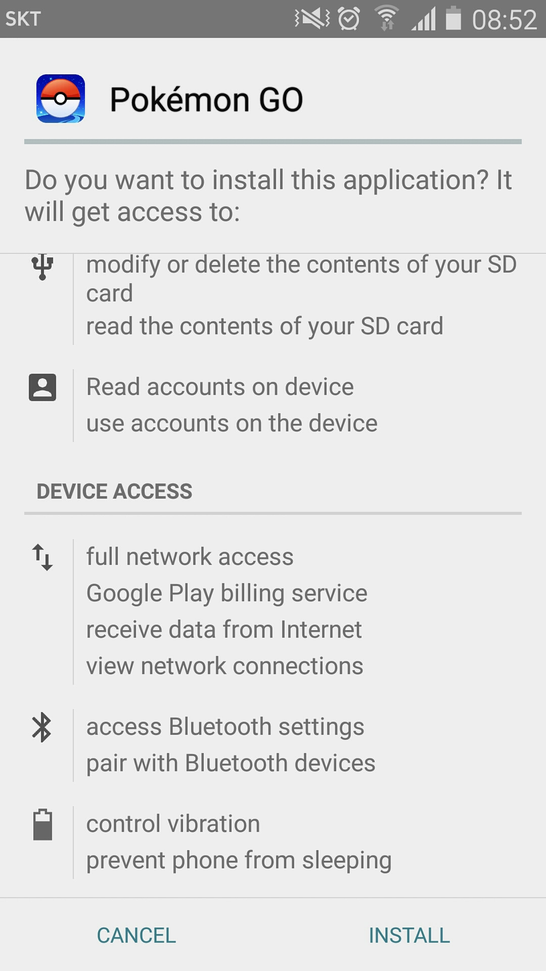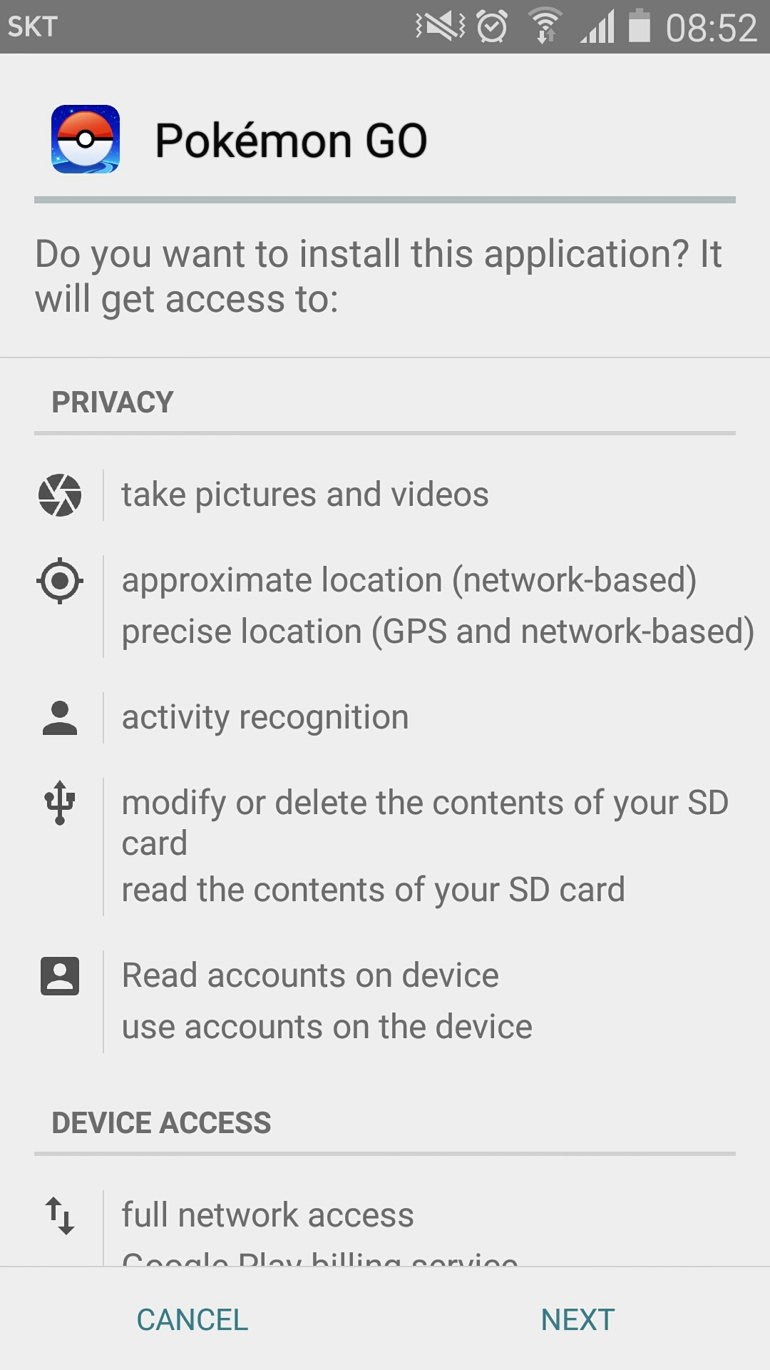 포캣몬 고라는 게임이 북미에 등장했다는 이야기를 들었다. 증강현실이라는 걸로 보아서 카메라를 연계한 게임일 것 같았다. 예전히 건물명이 둥실 떠 다니는 스캔서치 형식이지 않을까라는 생각에 국내에선 설치할 수 없어서 인터넷을 통해 apk를 다운받아 설치해 본다.