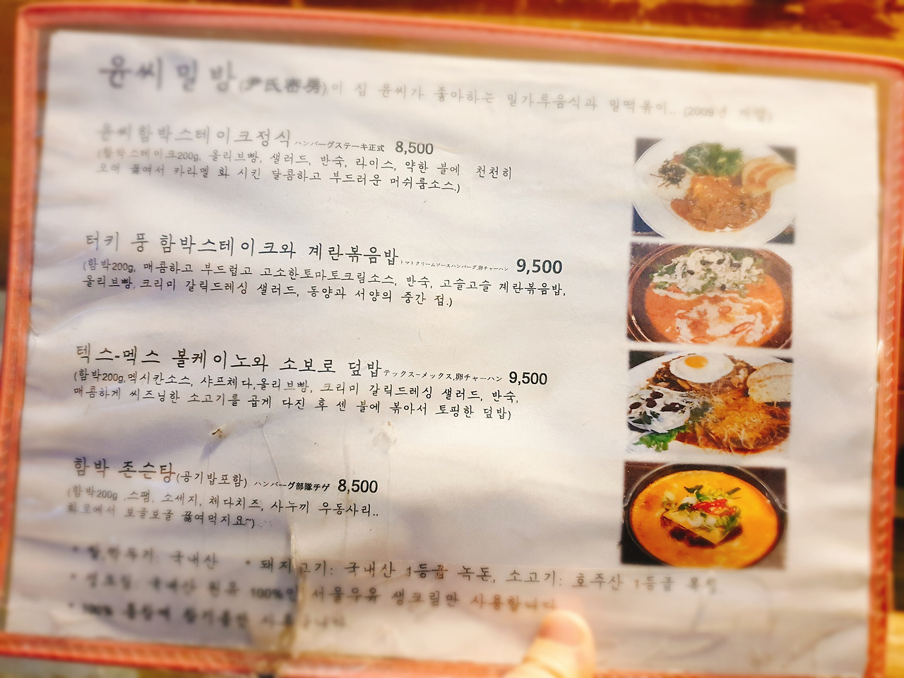윤씨 밀방 함박땜시 또 왔네 또왔네 윤씨밀방,함박스테이크,스파게티,라이카 | 참새가 방앗간을 그냥 지나랴? 나의 방앗간이 된 윤씨밀방,한달새 몇번째인지 맛집의 정의는 단연코 빈도수다. 매일 가서 매일 글을 남기는 것이 아니라면 몇 번 올리는 것도 나쁘지 않을 것이다. 새로운 시도로 낭폐를 당하는 것 보다 이롭기 때문이다. 역시 오늘도 함박이다. 역시 2호점, 2호점이 1호점보다 사람이 적기 때문이다. 줄 선 사람들과 계단사이