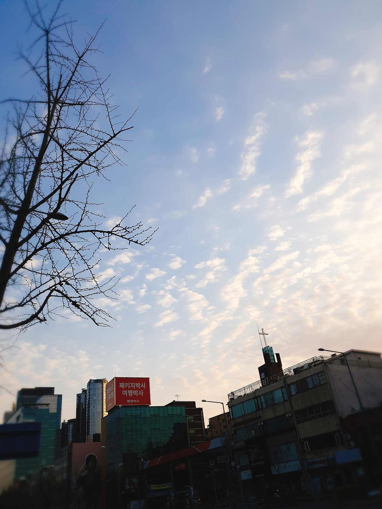 이른 아침 오래간만에 하늘다운 하늘이다.