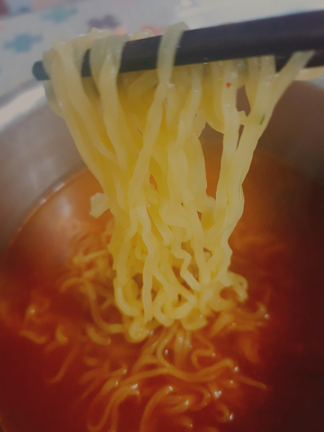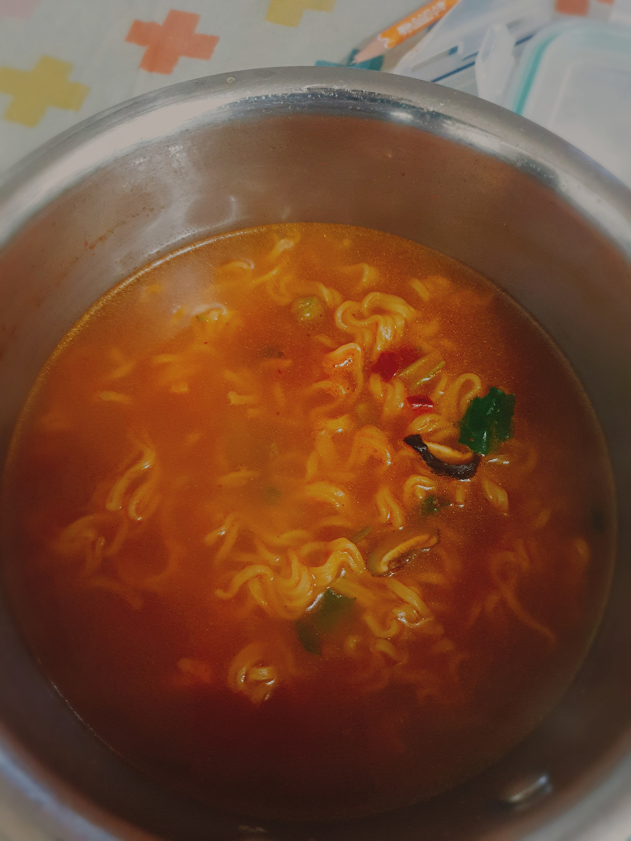 건면 면발이 질기다. 그래서 한참을 끓인다.젓가락으로 계속 휘젓는다.