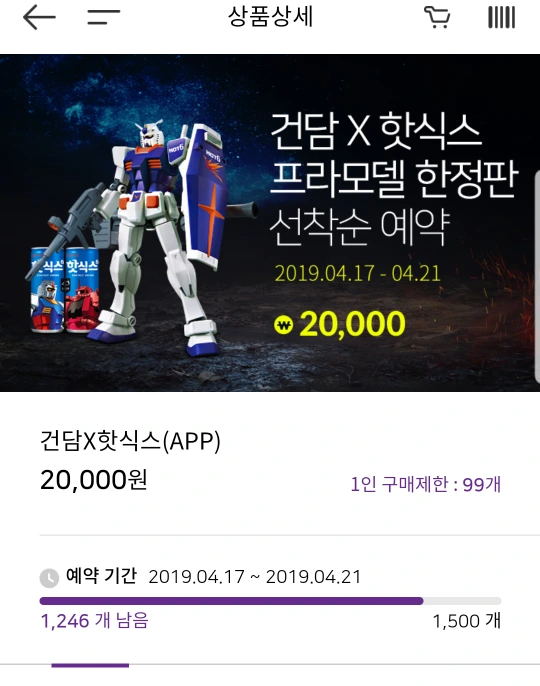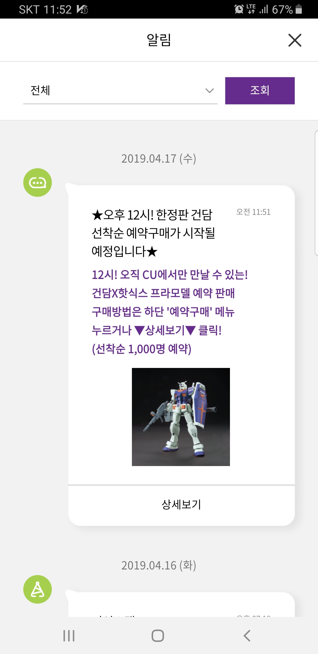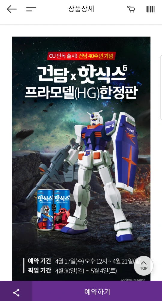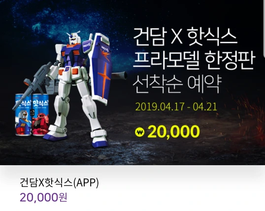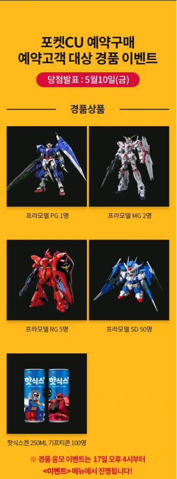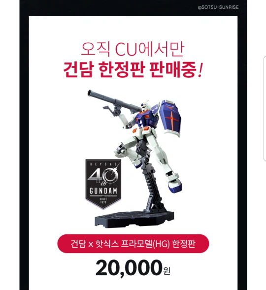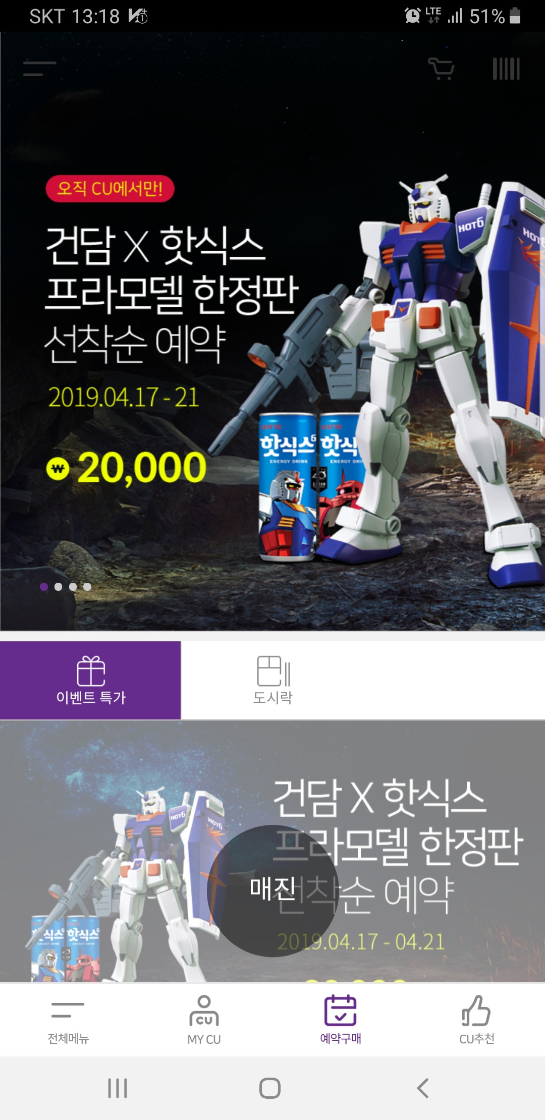 CU 건담×핫식스프라모델(HG) 예약구매 CU편의점,예약구매,건담,HG,프라모델 | CU 이벤트 집 근처 편의점 CU를 자주 애용한다. 그리고 언제부터인가 앱으로 적립하는 솔솔 함도 있다. CU앱 메인 화면에 뜬 이벤트다. 건담이란다. 프라모델이 몇 년 만인가? CU 모바일 홈페이지 https://membership.bgfretail.com/ship/eventList CU 앱 건담 ×핫식스 프라모델(HG) 한정판 가격은 20,000원