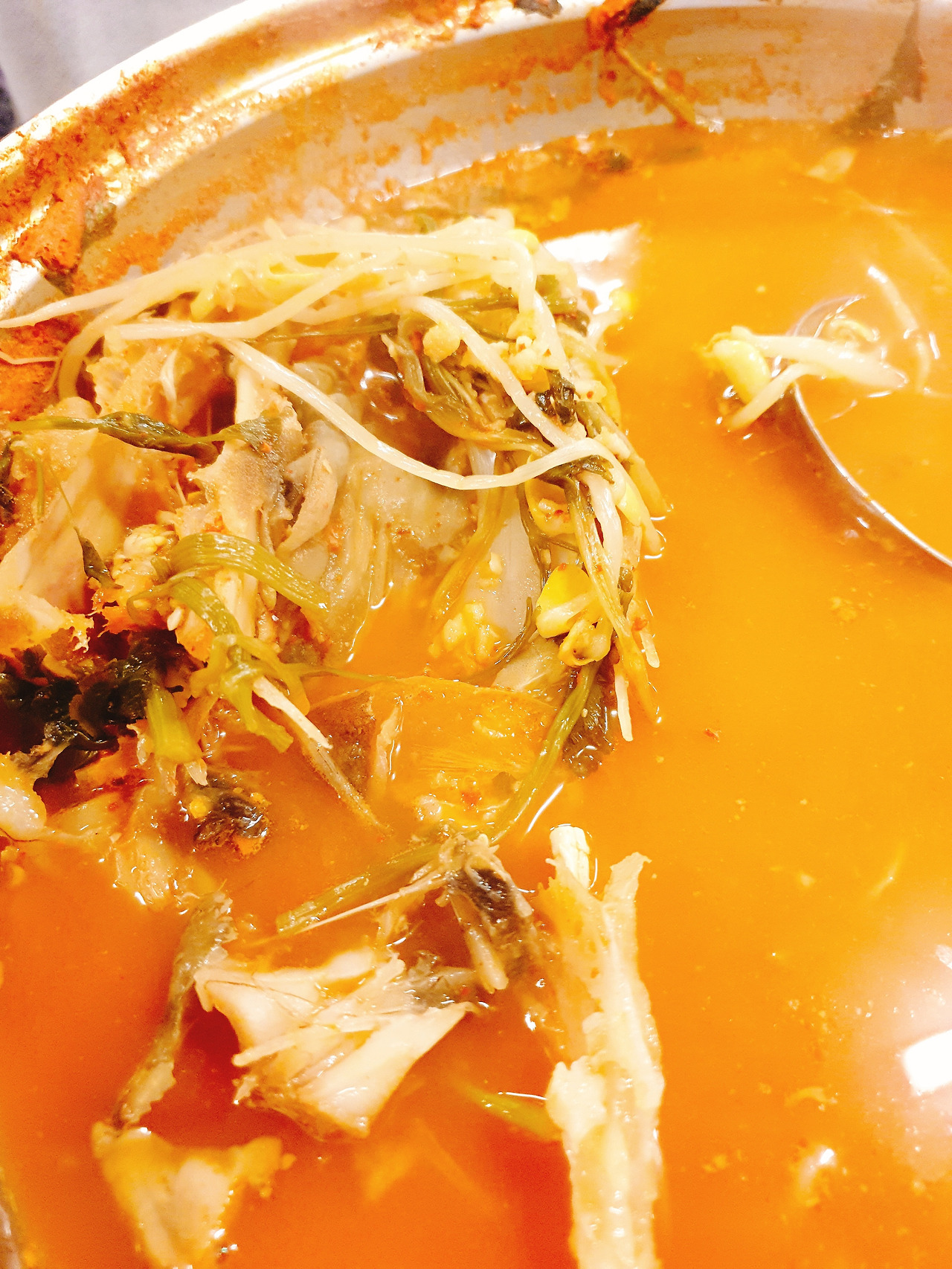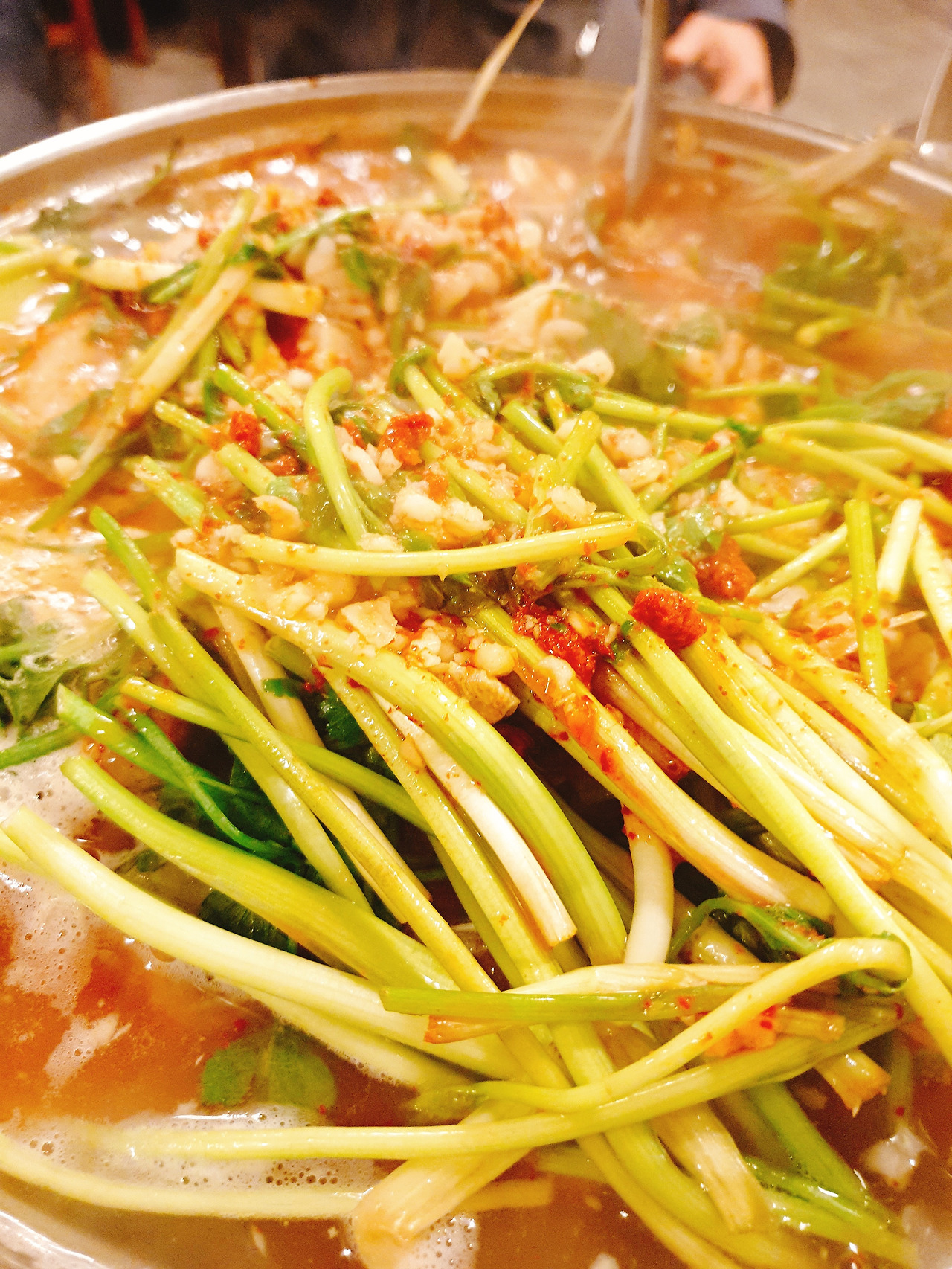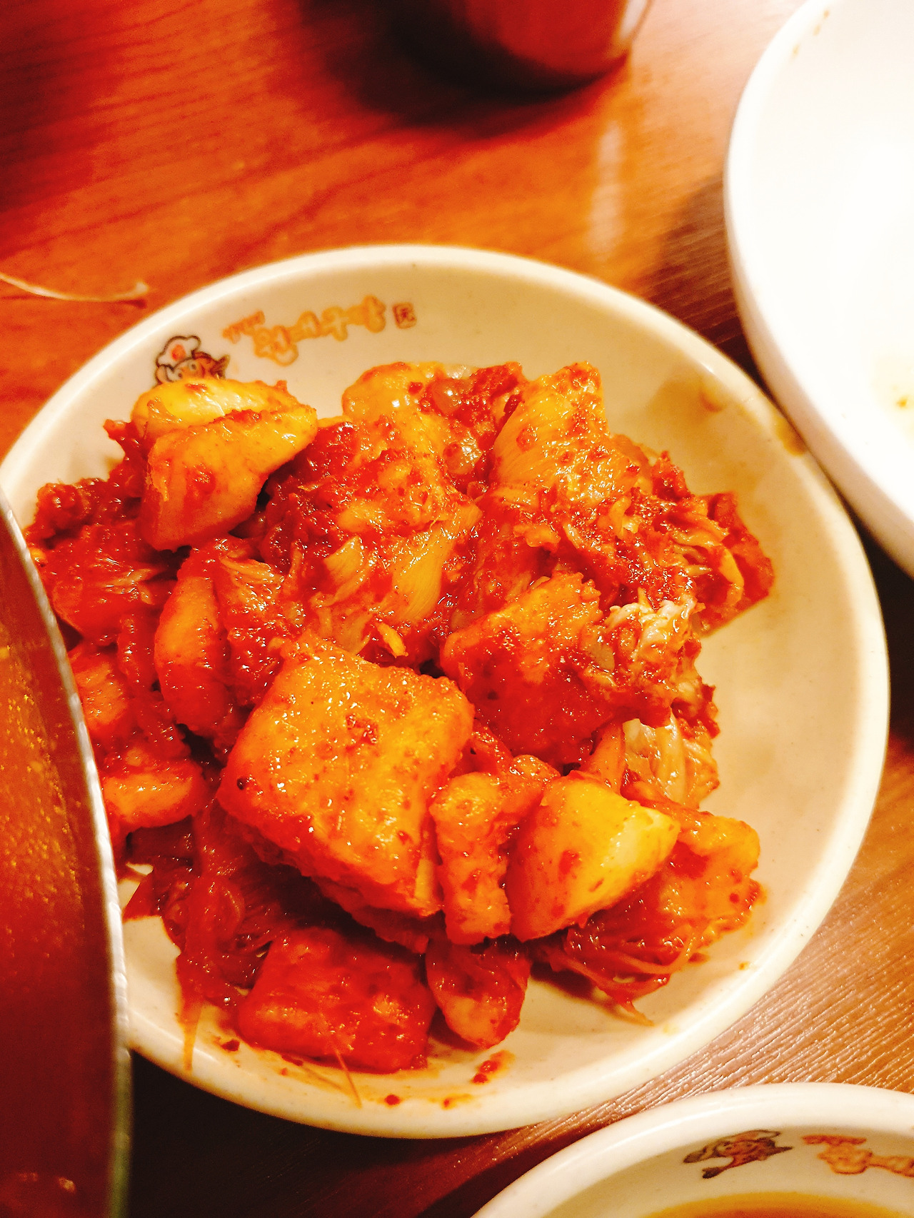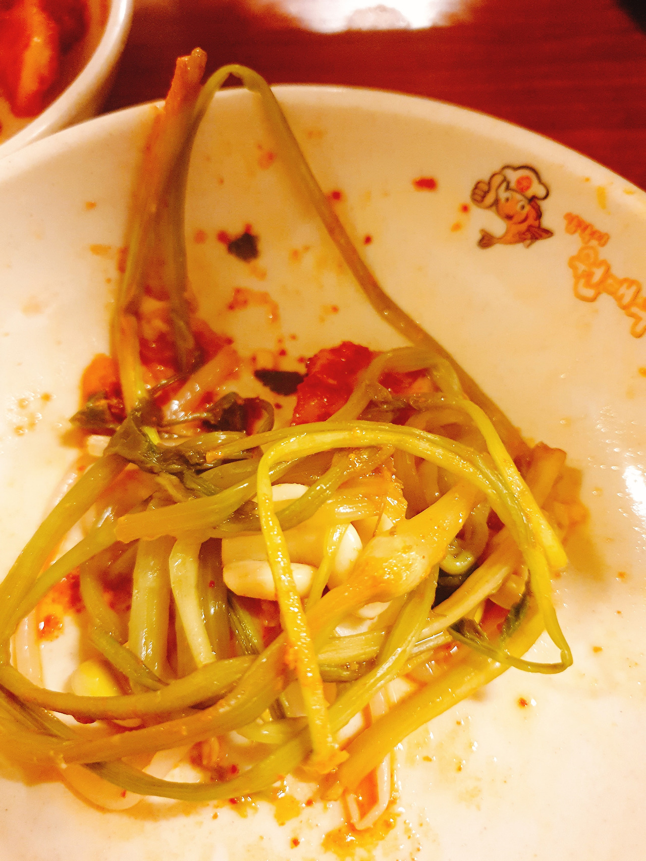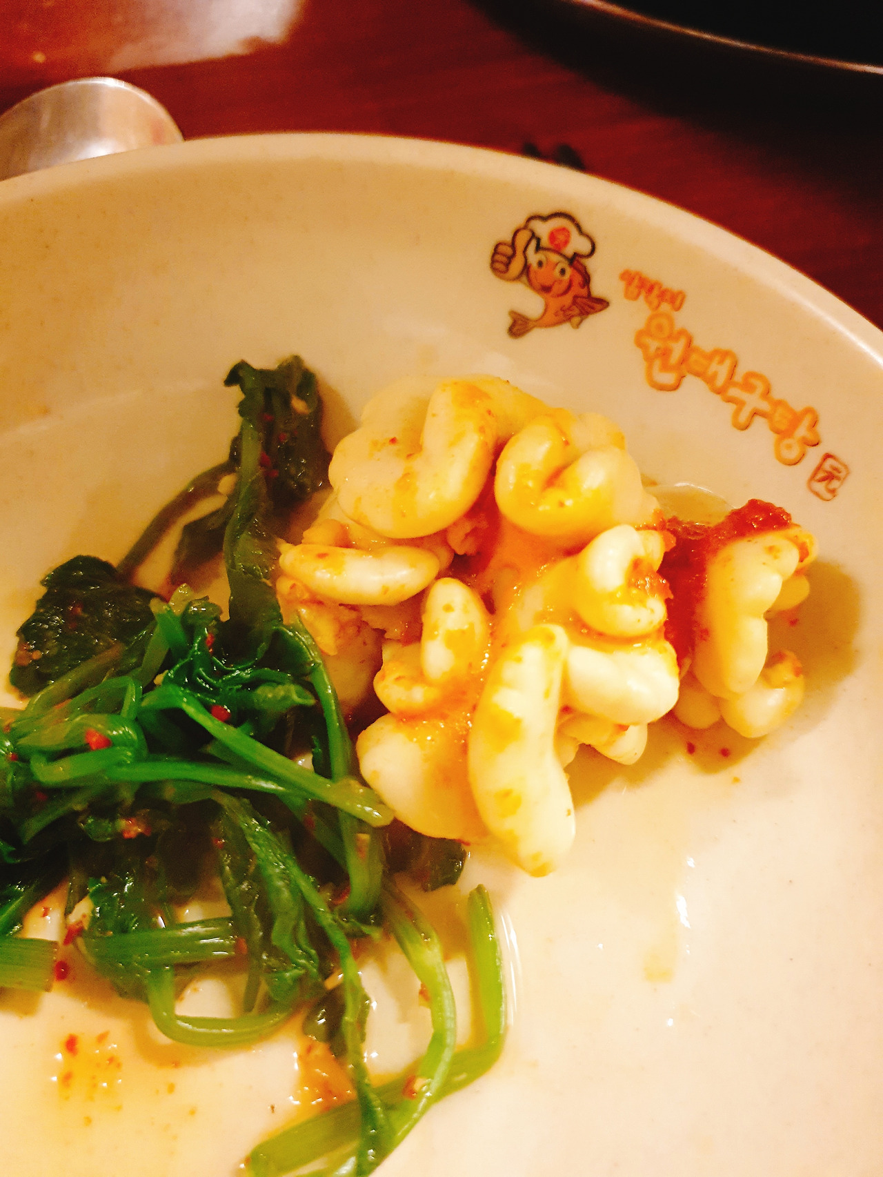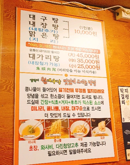 소스는 간장+식초+겨자+후추드실 때 미나리, 콩나물, 내장, 대구 순