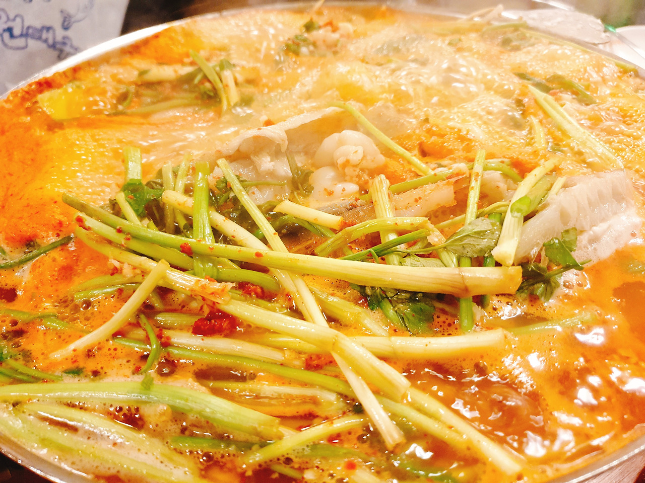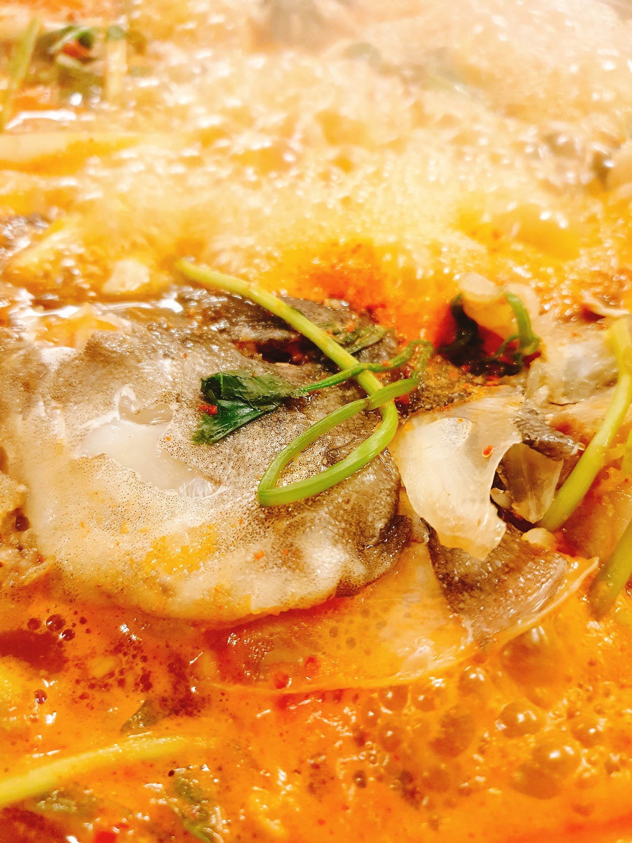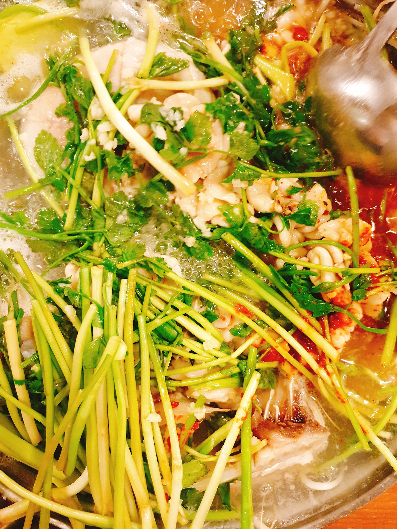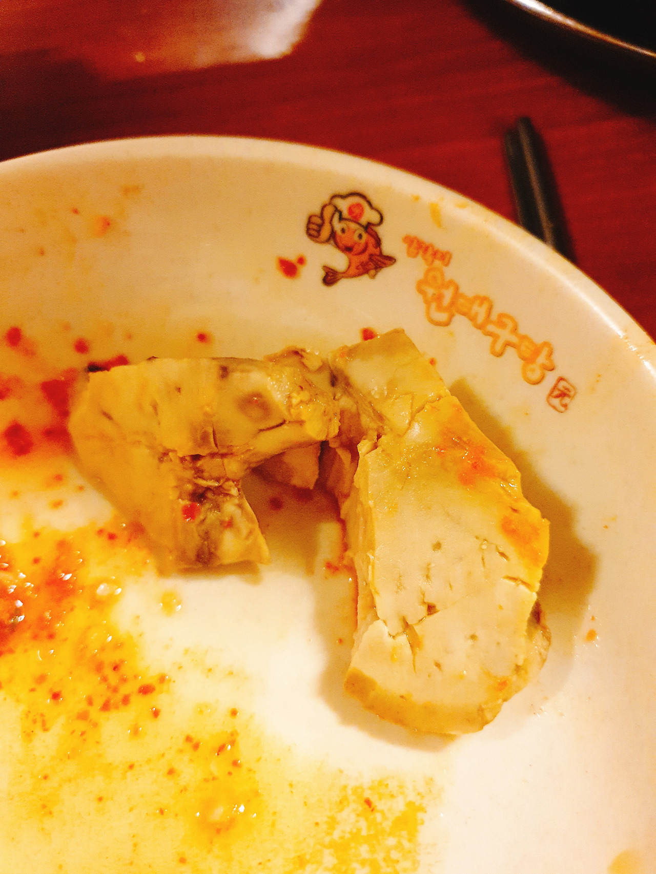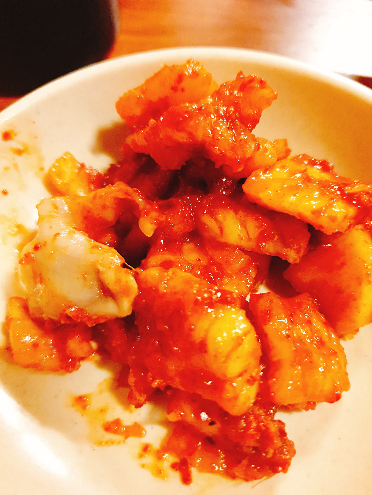 소스는 간장+식초+겨자+후추드실 때 미나리, 콩나물, 내장, 대구 순