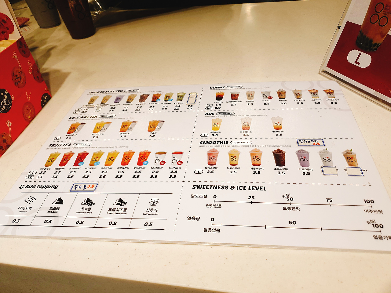 가성비갑 춘천을 휩쓴 팔공티가 대세다!! 춘천,팔공티,춘천강원대,버블티,palgongtea | 팔공티 강원대 PALGONG TEA 춘천 강원대점 팔공티 겨울에도 아이스가 잘 팔린다고 한다. 가성비 짱이다. 팔공티 강원지점 입구다.» 카운터» 팔공티 내부» 주문» 크림치즈폼 타로밀크티와 초코폼 오리지널밀크티 팔공티 맛» 공차는 좋아했지만 어쩌고 저쩌고의 그 복잡함이 귀찮았다. 그리고 모니모니해도 타피오카 이 맛과 느낌이다. 정말 맛나다는 것이다. 한
