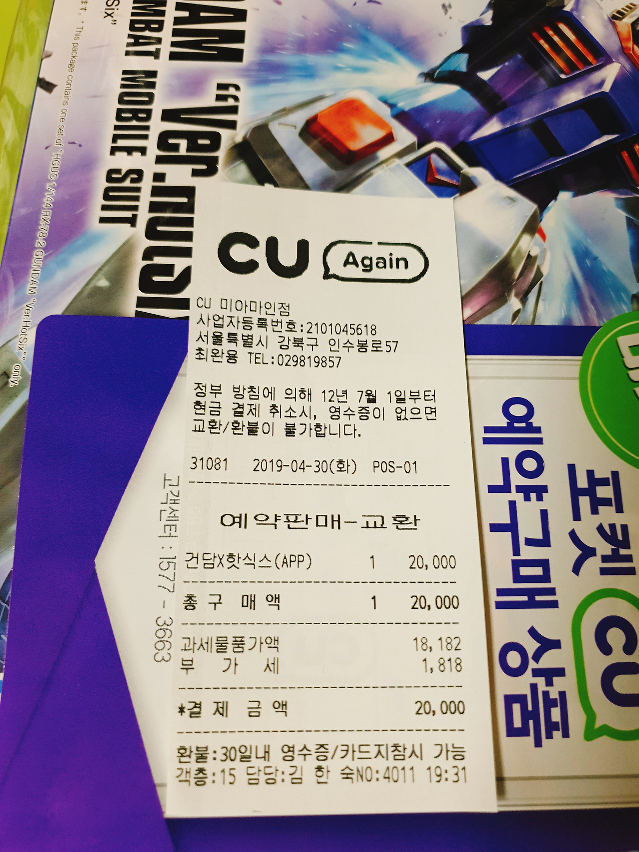 CU 건담×핫식스프라모델(HG) 예약구매 CU편의점,예약구매,건담,HG,프라모델 | CU 이벤트 집 근처 편의점 CU를 자주 애용한다. 그리고 언제부터인가 앱으로 적립하는 솔솔 함도 있다. CU앱 메인 화면에 뜬 이벤트다. 건담이란다. 프라모델이 몇 년 만인가? CU 모바일 홈페이지 https://membership.bgfretail.com/ship/eventList CU 앱 건담 ×핫식스 프라모델(HG) 한정판 가격은 20,000원