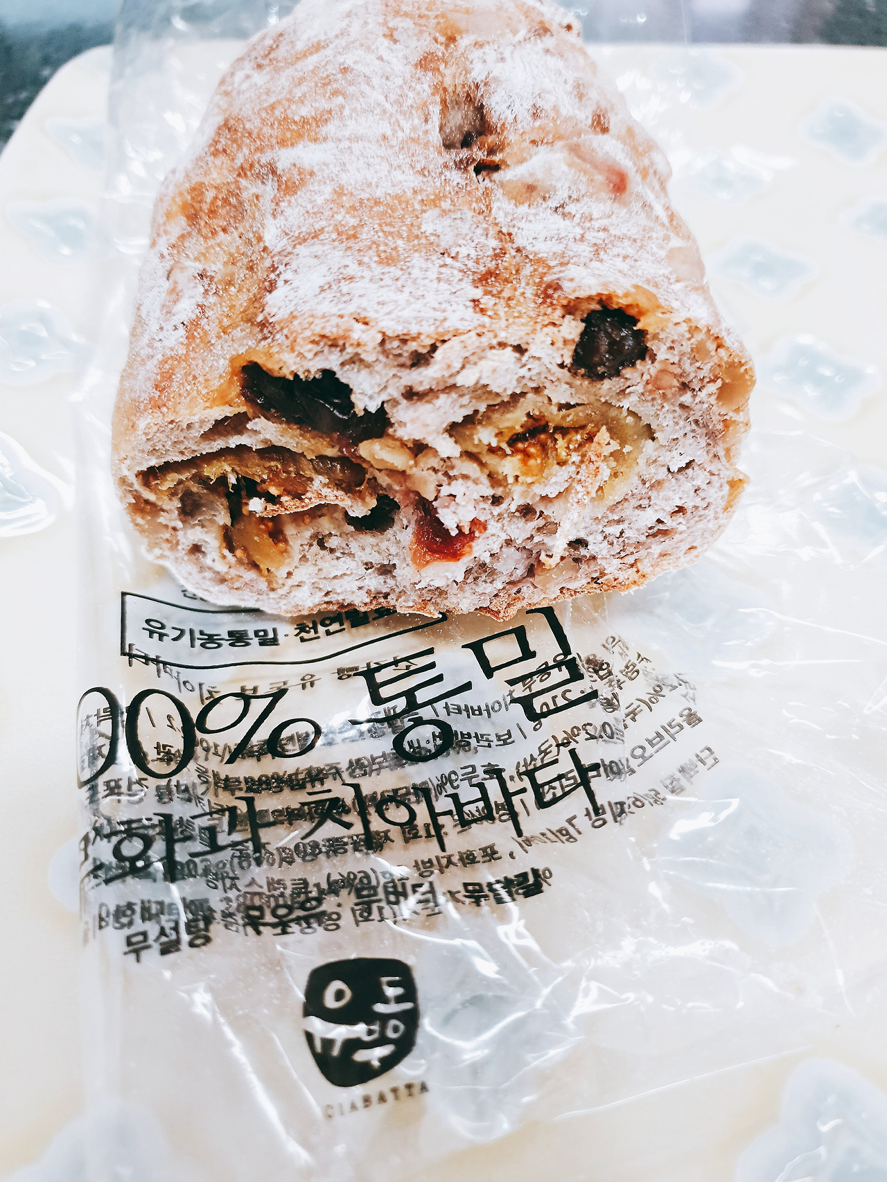 호밀빵의 뻑뻑함을 달래기 위하여 무화과 치아바타를 선택하였습니다. 나름 조화가 되었습니다. 물론 무화과 치아바타는 내가 제일 좋아라는 빵이라는 겁니다.