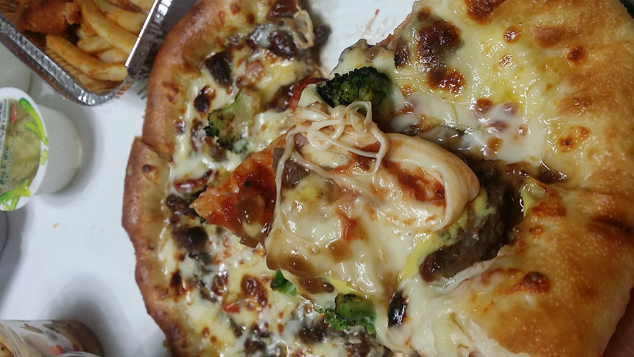피자를 배불리 먹는다. 금요일 저녁 대성공이다.