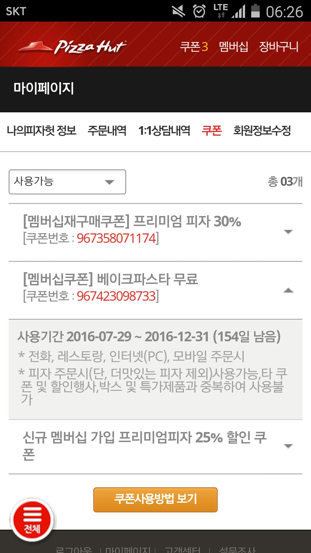 새로 앱을까니 쿠폰이 2개 생긴다. 하지만 모바일의 포장 40%, 배달 30% 혜택이 더 커보인다. 역시 모라 모라 하지만 워낙 대가족이라 와우7박스를 선택한다. 구매하고 나니 신규회원 쿠폰에다 재구매쿠폰도 생긴다. 금번 구매로 피자헛 적립금은 쌓인다.