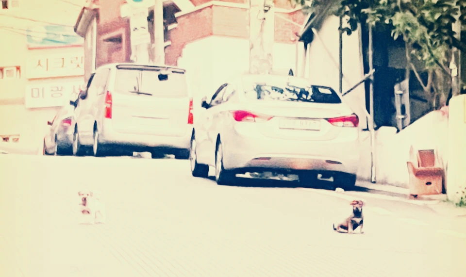 그래서 가까이 갈수록 슬금슬금 물러서는 강아지 두마리