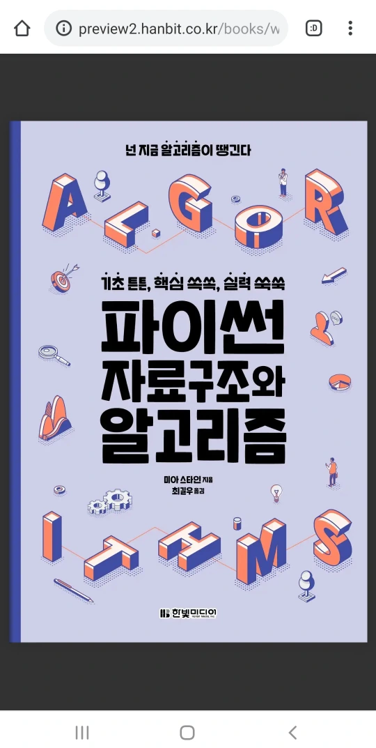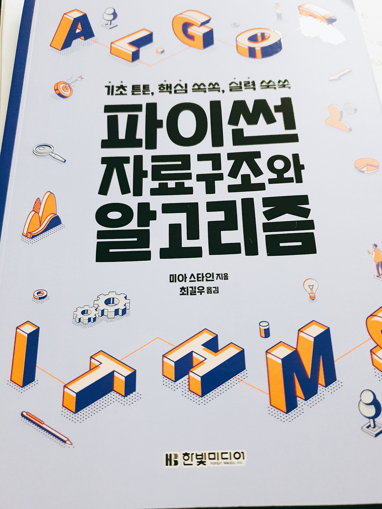 파이썬 자료구조와 알고리즘 : 기초 튼튼, 핵심 쏙쏙, 실력 쑥쑥<br>http://www.hanbit.co.kr/store/books/look.php?p_code=B8465804191