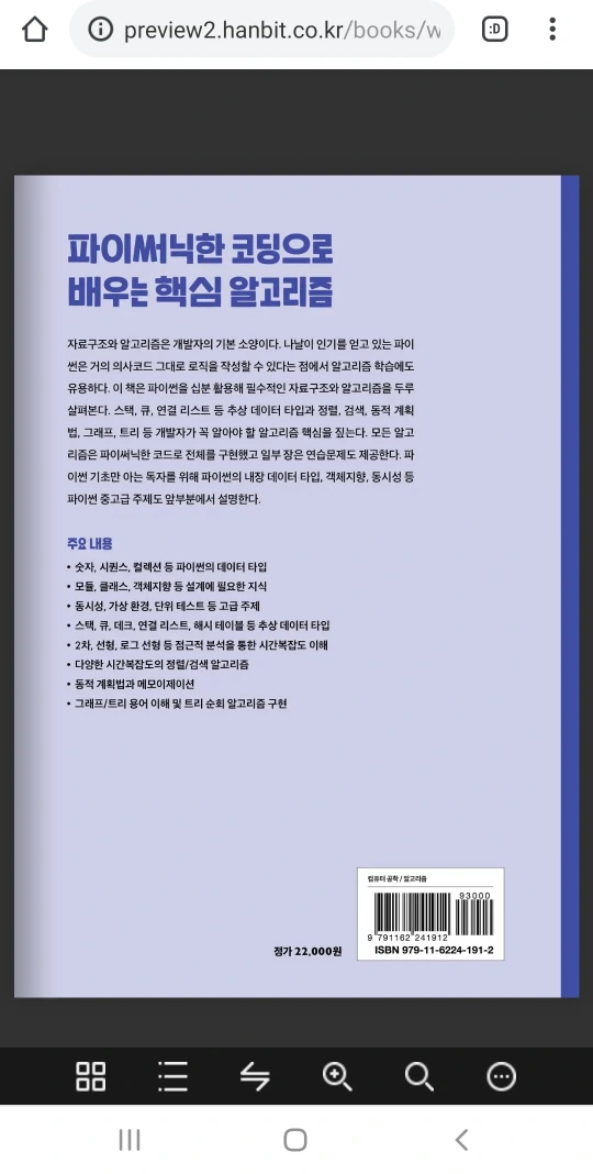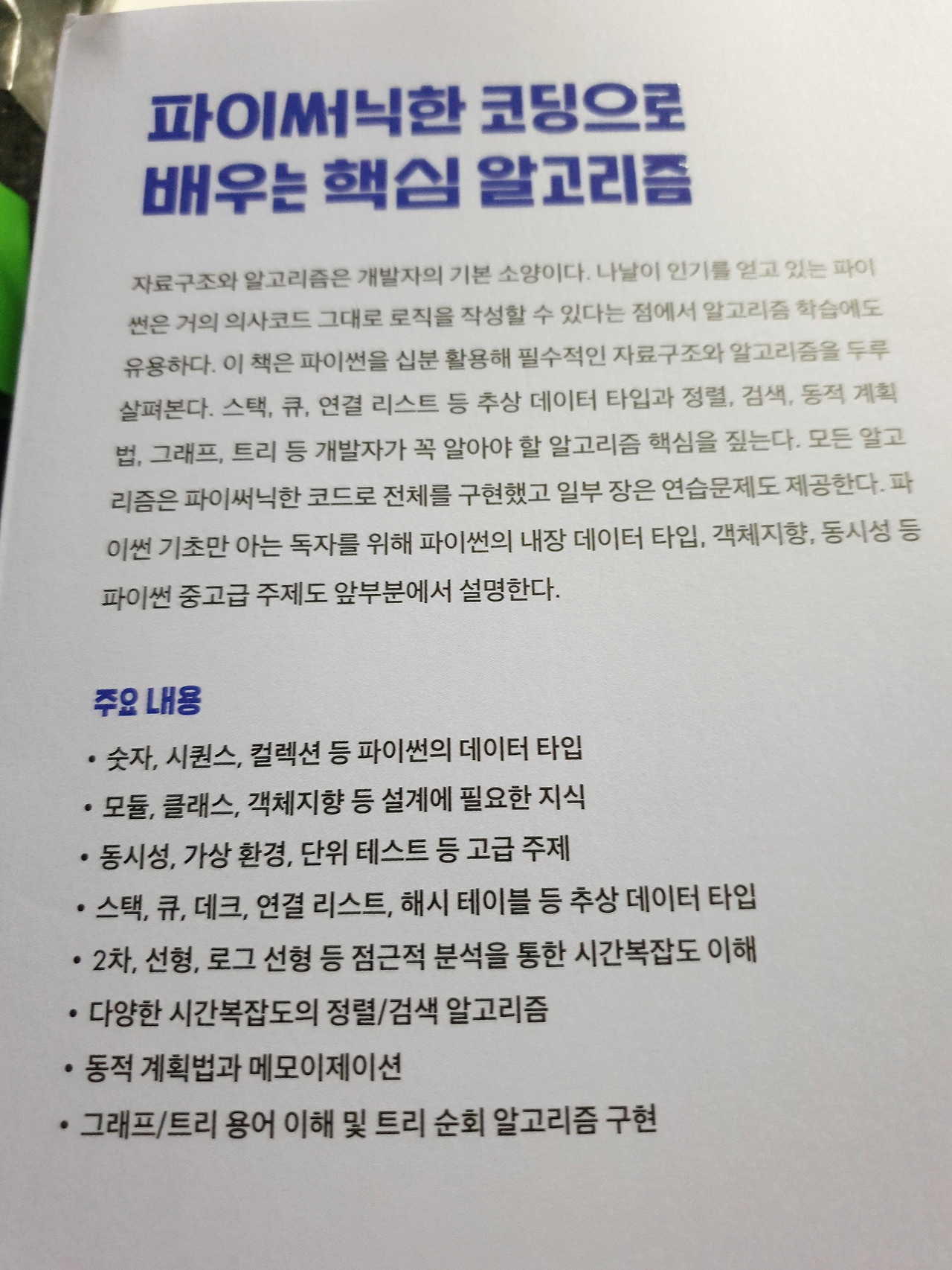 파이썬책,자료구조,알고리즘,한빛미디어,독전감