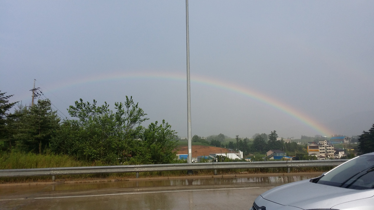 무지개가 모라고 우리는 아이들의 신기해 함에 동참하며, 동심으로 돌아갔다. 무지개의 설명은 우리의 몫이지만 평소에는 볼 수 없었던 거대한 무지개에 압권을 당했다.