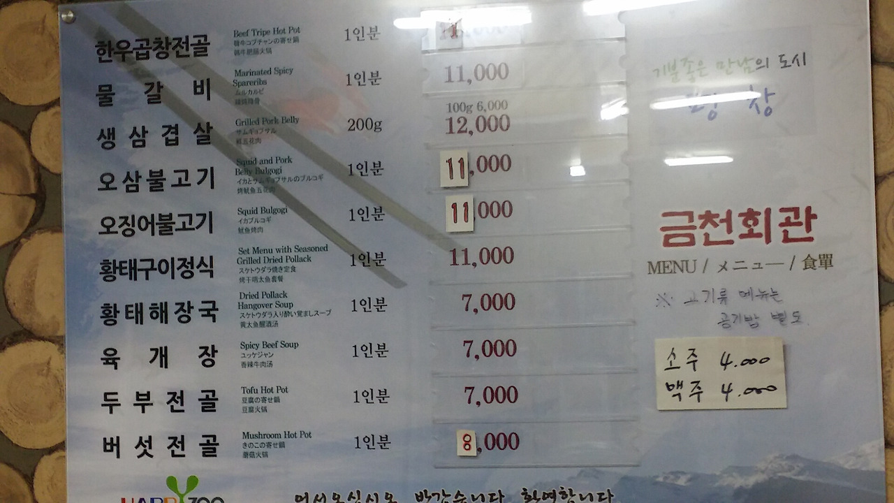 금천회관, 오삼불고기와 아이들을 위한 물갈비를 주문했다. 핸드폰으로 메인 메뉴 사진을 찍었건만 저장이 안 되었다. 그냥 남아있는 밑반찬 사진만 올려본다.