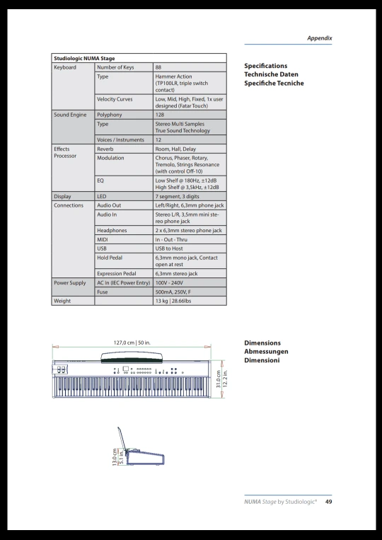 스테이지 피아노, 무대 피아노가볍고 최고급 터치감을 주력으로 한 스테이지 피아노 특성을 가장 잘 반영한 스테이지 피아노이다.