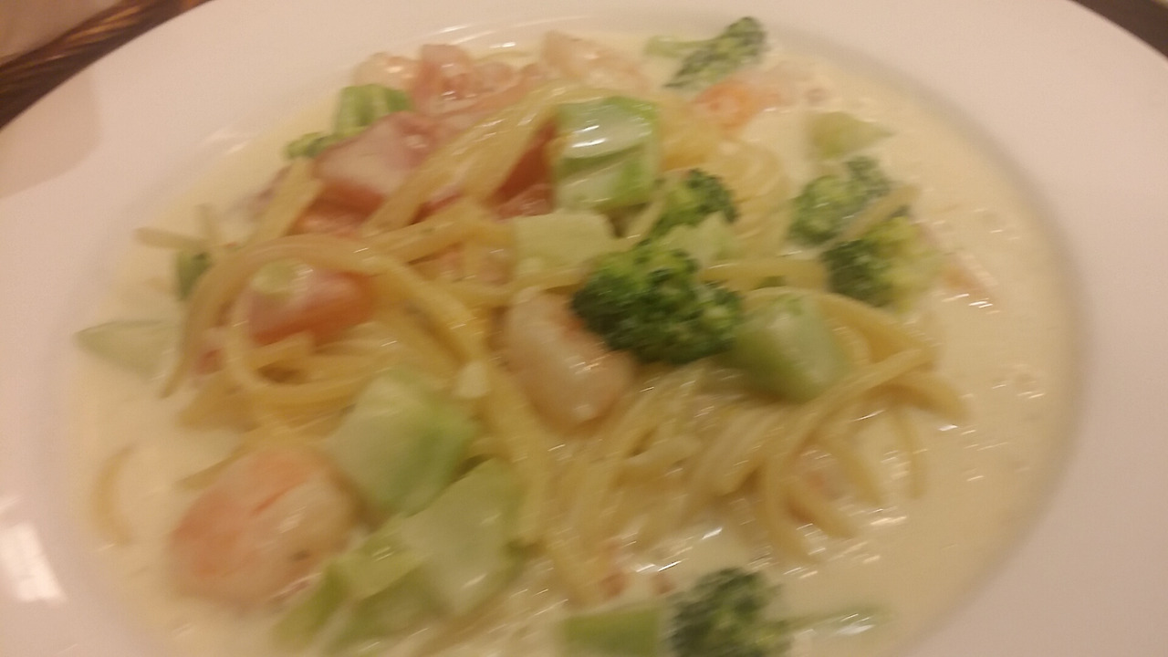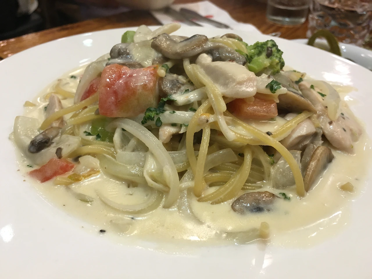 여러가지 색상의 스파게티로 허기를 달랬다.