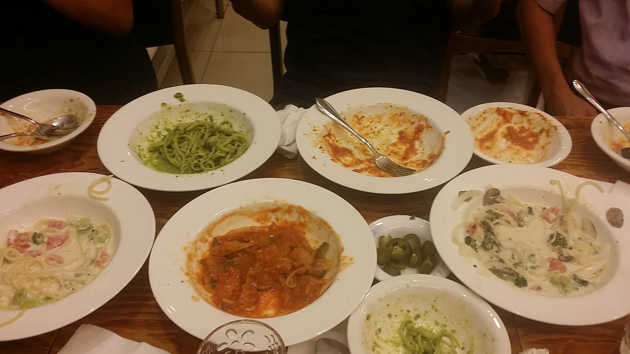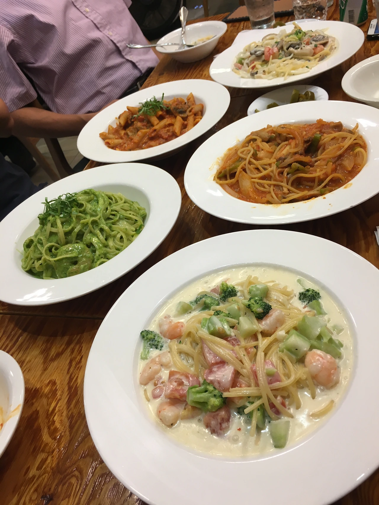 종류별로 시킨 스파게티, 평소보다 늦게와서 마감시간이 되어서 그런지 장정들의 모임이라 그런지 양이 평소보다도 남달랐다.