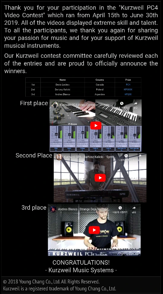 3편의 동연상은 나름 볼만하다. 콘테스트는 결국 컨셉과 화면 구성일 것이다. 어쩌면 영상美가 주일 수도 있다. 그리고 금번에 커즈와일 PC4가 나왔으니 다음번 주류는 PC4가 될 것이다. 금번에는 PC3K, SP6, PC3x가 등장했다. 그중에 SP6는 최신 모델이기도 하다.