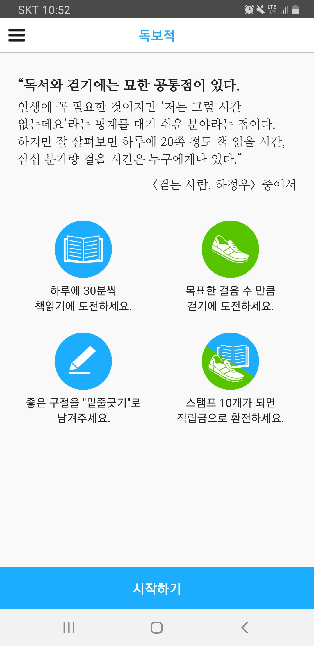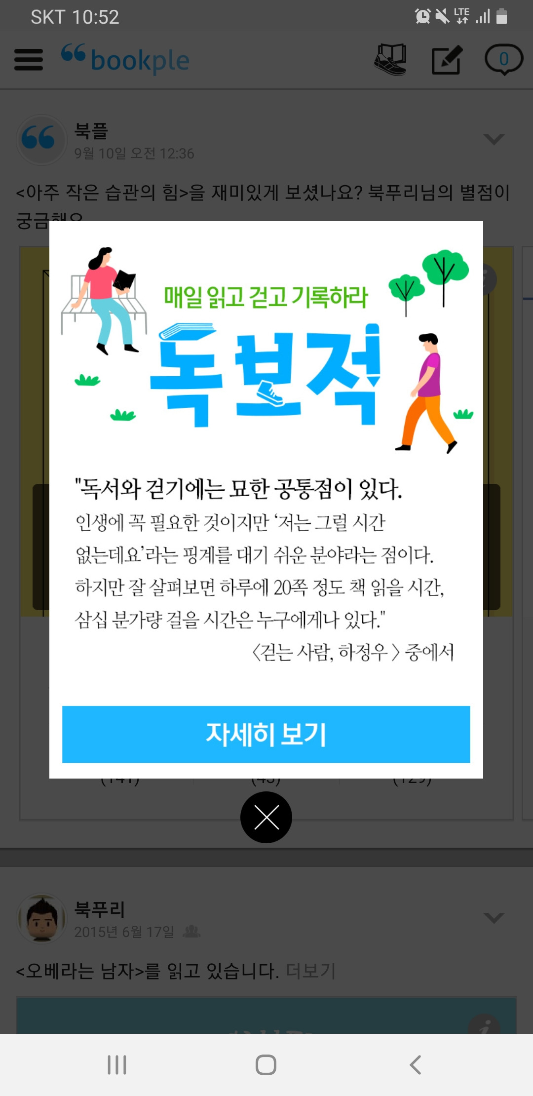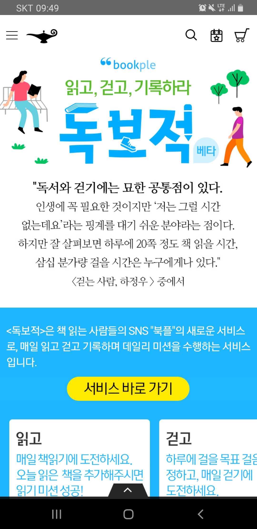 독서와 걷기책보다는 스마트폰 선택의 여지는 없다.그냥 필수다.그래서 연결고리를 나름 찾았다.나같이 책과 독서에 관심 있는 사람들에게 딱이다.불편 없이 지속해서 계속 쓰느냐가 관건이다.