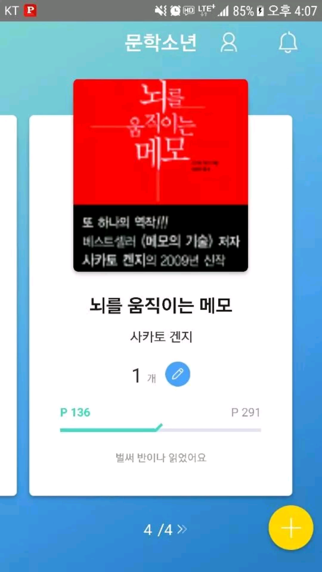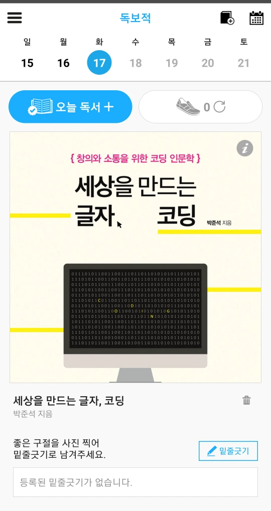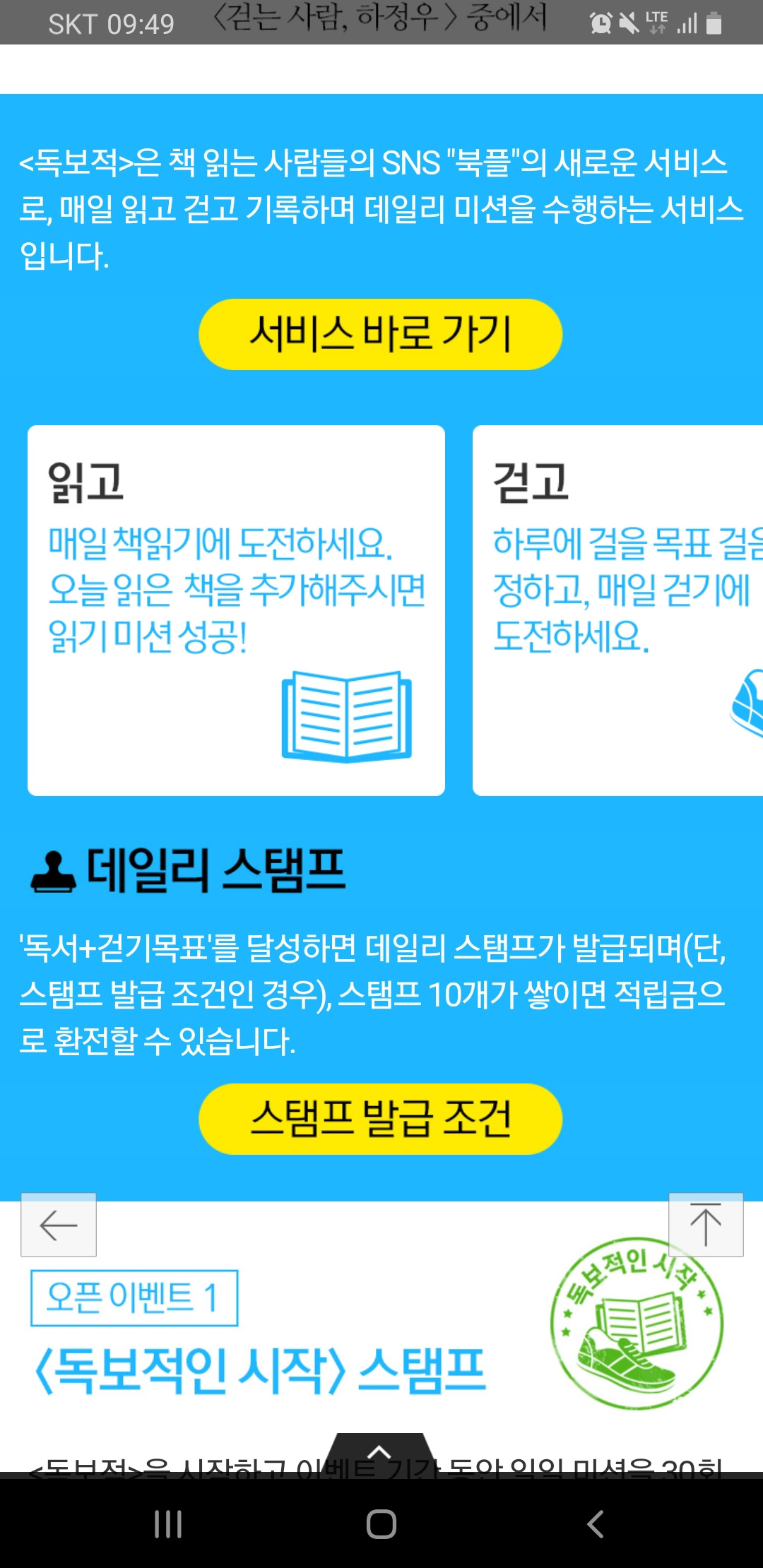독서와 걷기책보다는 스마트폰 선택의 여지는 없다.그냥 필수다.그래서 연결고리를 나름 찾았다.나같이 책과 독서에 관심 있는 사람들에게 딱이다.불편 없이 지속해서 계속 쓰느냐가 관건이다.