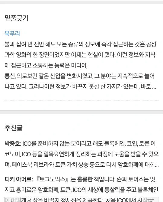 비트코인과 블록체인 그리고 ICO를 포함한 토큰 경제학의 개념을 훑어보고, ICO 전문가가 바라본 블록체인 기술의 과거와 현재를 살펴보며 앞으로 펼쳐질 새로운 경제 패러다임을 이야기한다.