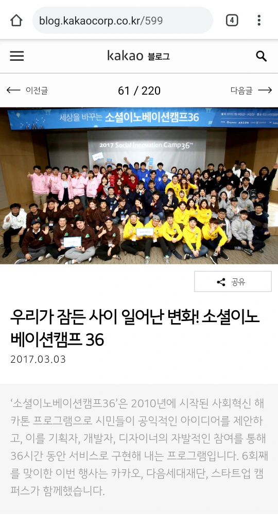 ‘소셜이노베이션캠프36’은 2010년에 시작된 사회혁신 해카톤 프로그램으로 시민들이 공익적인 아이디어를 제안하고, 이를 기획자, 개발자, 디자이너의 자발적인 참여를 통해 36시간 동안 서비스로 구현해 내는..