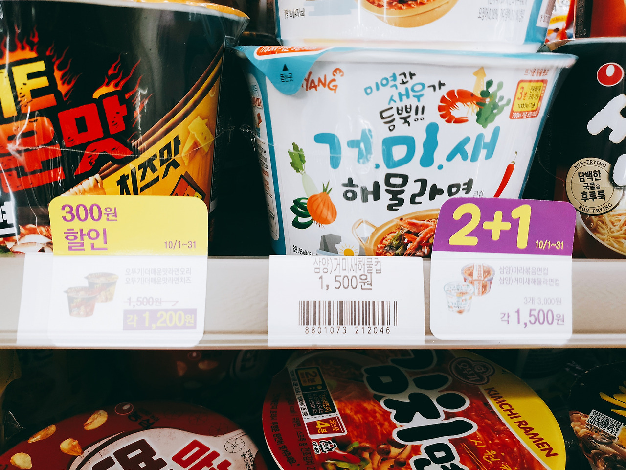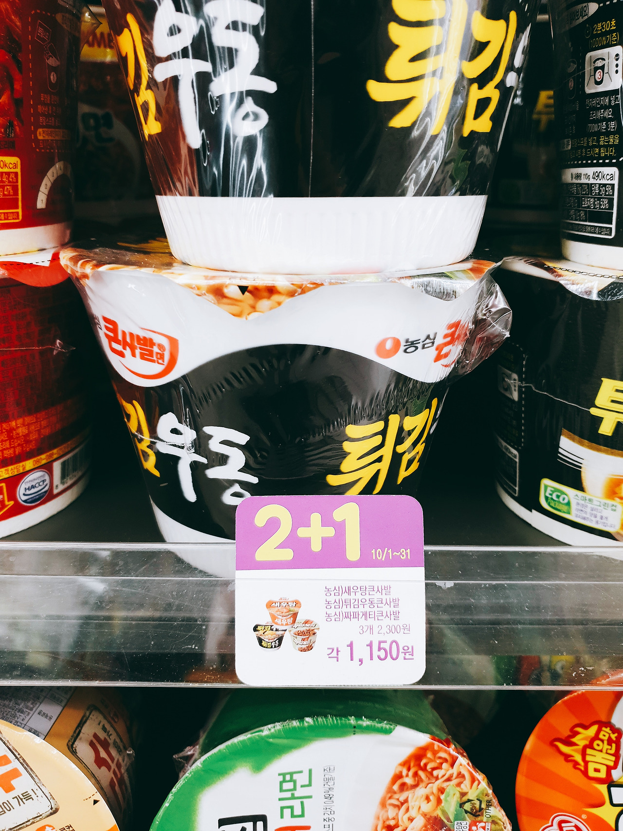 주말에 한 번은 꼭 컵라면그래서 2+1은 유용합니다. 그래서 매달 근처 편의점 컵라면을 정리해 봅니다. 일주일마다 바꿔먹는 재미도 솔솔 합니다.
